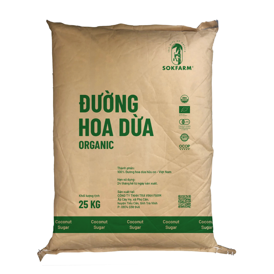 Nhà máy được đặt tại vùng trồng dừa hữu cơ lớn thứ 2 Việt Nam, cam kết được sản lượng cung cấp nguyên liệu ổn định và liên tục. Mỗi tháng, Sokfarm nhập liệu 80 tấn mật hoa dừa tươi, cho ra 20 tấn thành phẩm. Trung bình mỗi năm sản xuất được 240 tấn nguyên liệu hữu cơ thành phẩm đưa ra thị trường tiêu thụ.