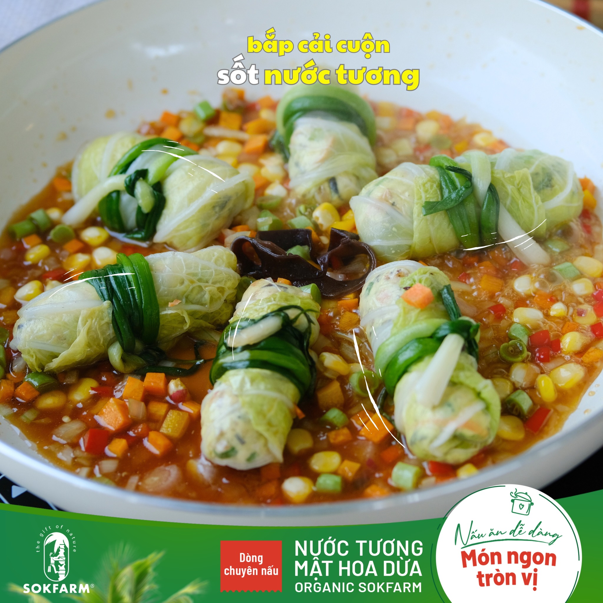 2. Công thức món bắp cải cuộn chay nước tương mật hoa dừa Organic Sokfarm
