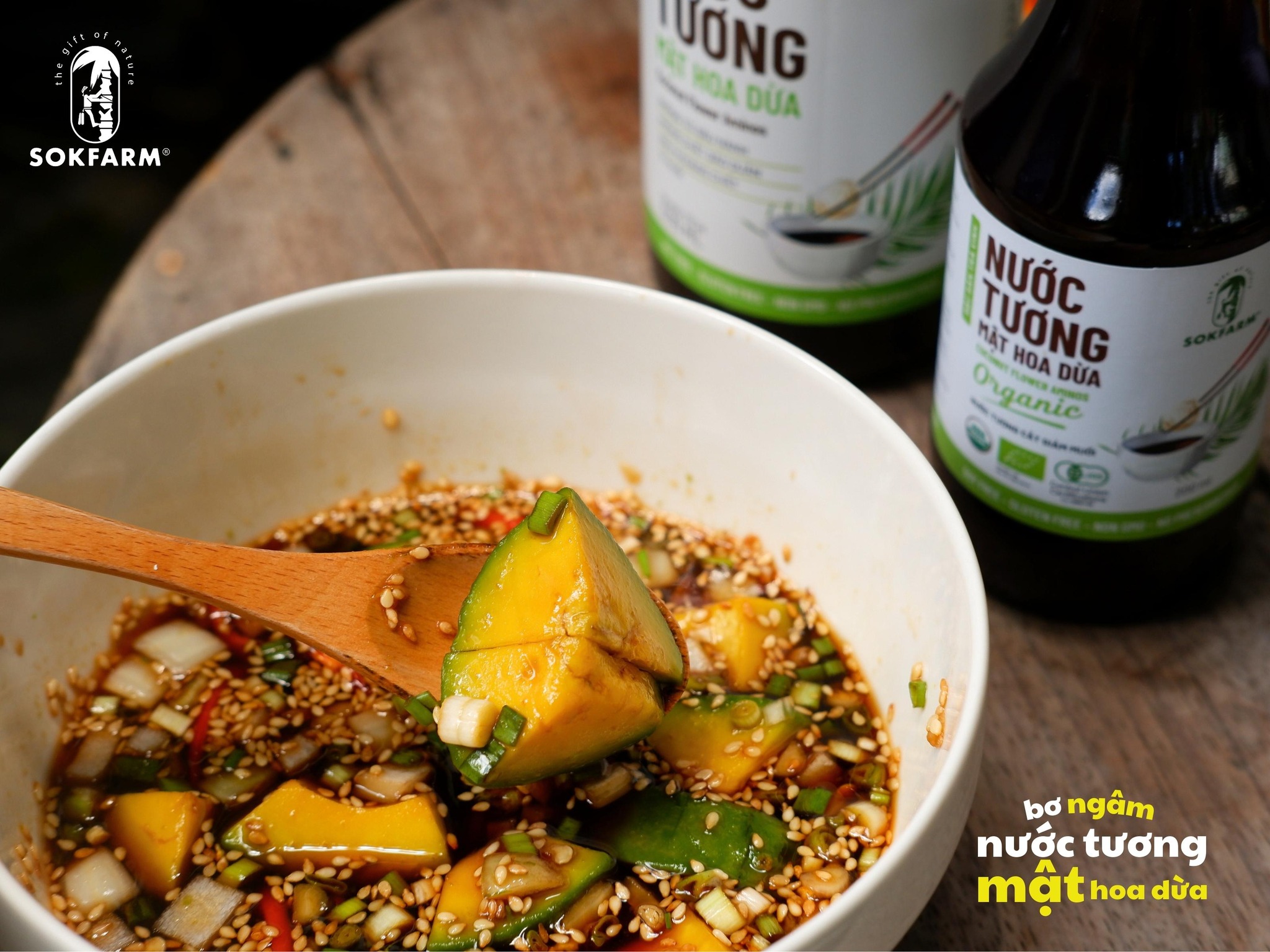 Món Bơ ngâm tương, còn được gọi là Bơ tương, là một món ăn ngon và hấp dẫn được lấy cảm hứng từ Nhật Bản. Nay team Sokfarm giới thiệu đến bạn món Bơ ngâm nước tương mật hoa dừa hữu cơ, đây là sự kết hợp mới, mang đến món ăn thuần chay cho ngày chay cát tường.