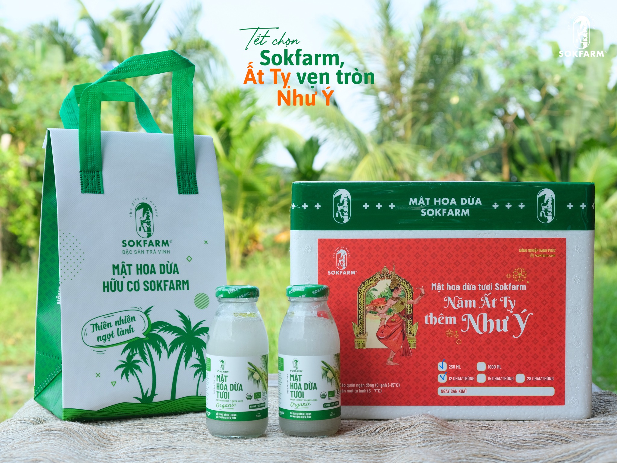 Điểm đặc biệt của quà Tết Sokfarm là sự kết hợp giữa nét đẹp truyền thống và giá trị hiện đại. Các sản phẩm như mật hoa dừa, đường hoa dừa, hay giấm mật hoa dừa đều được sản xuất từ quy trình hữu cơ, đảm bảo an toàn sức khỏe và bảo vệ môi trường. Đây không chỉ là món quà tri ân mà còn là lời cam kết hướng đến một cuộc sống bền vững. Với Sokfarm, bạn không chỉ trao đi một món quà mà còn gửi gắm sự trân trọng và tình cảm sâu sắc đến người nhận.