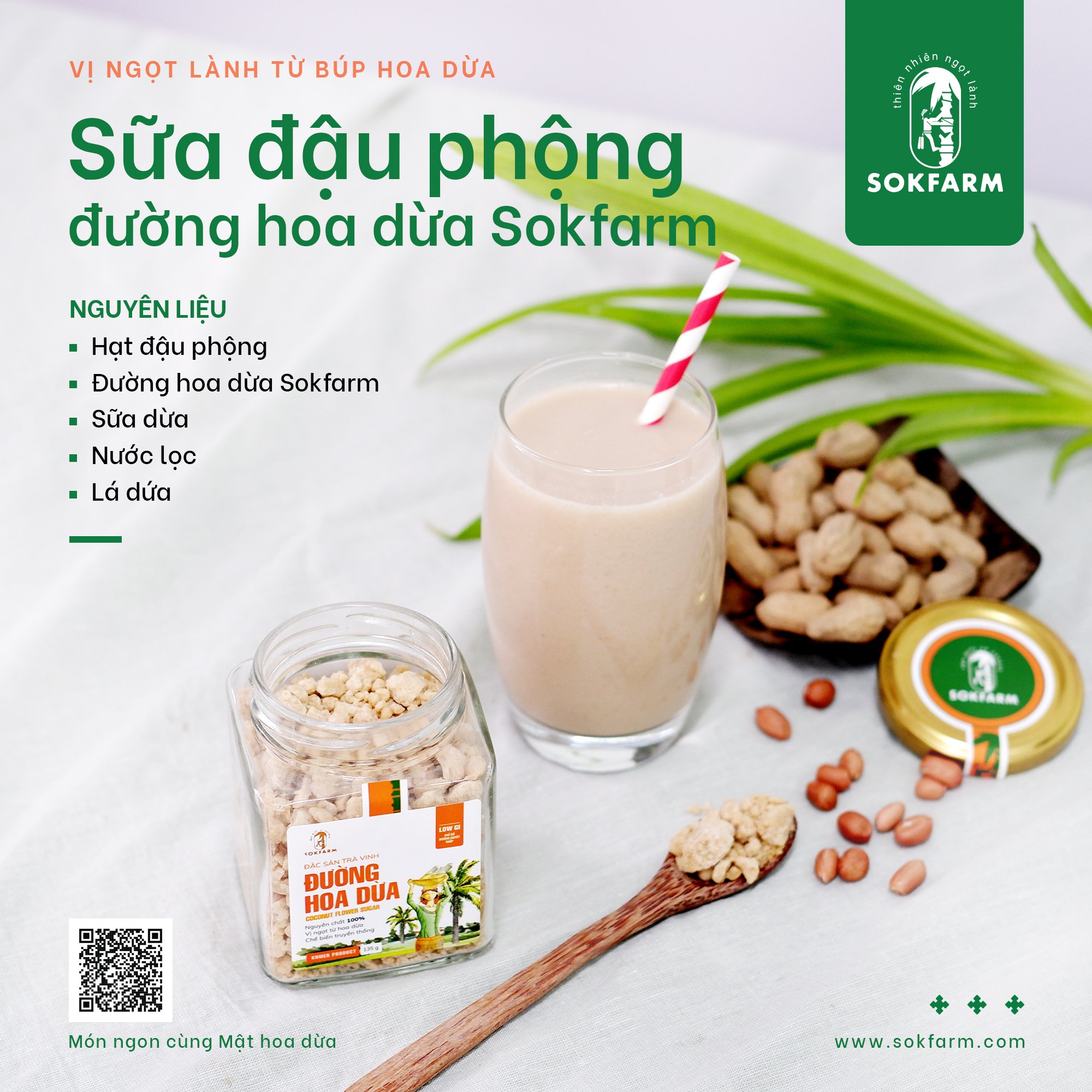 Sự kết hợp tuyệt vời của sữa đậu phộng và đường hoa dừa hữu cơ Sokfarm