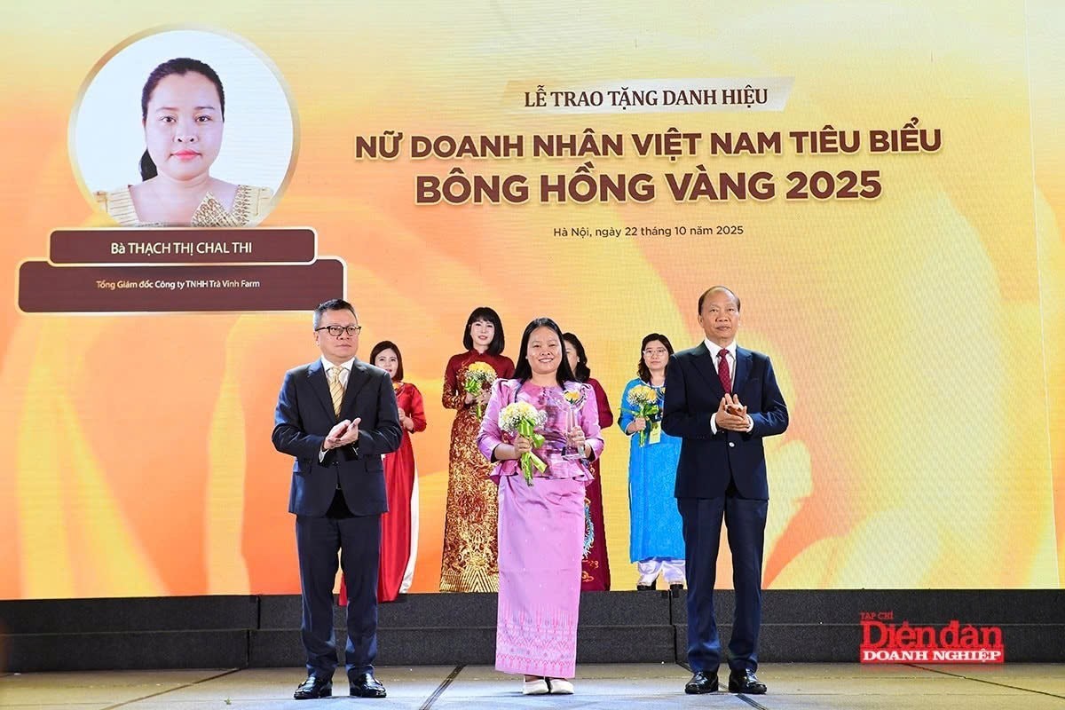 Ngày 22/10/2025, tại Hà Nội, chị Thạch Thị Chal Thi, Tổng Giám đốc Công ty TNHH Trà Vinh Farm (Sokfarm), đã vinh dự được Liên đoàn Thương mại và Công nghiệp Việt Nam (VCCI) trao tặng danh hiệu “Nữ Doanh nhân Việt Nam tiêu biểu – Bông Hồng Vàng năm 2025” – một giải thưởng danh giá ghi nhận bản lĩnh, trí tuệ và tinh thần cống hiến của phụ nữ Việt Nam thời hội nhập.