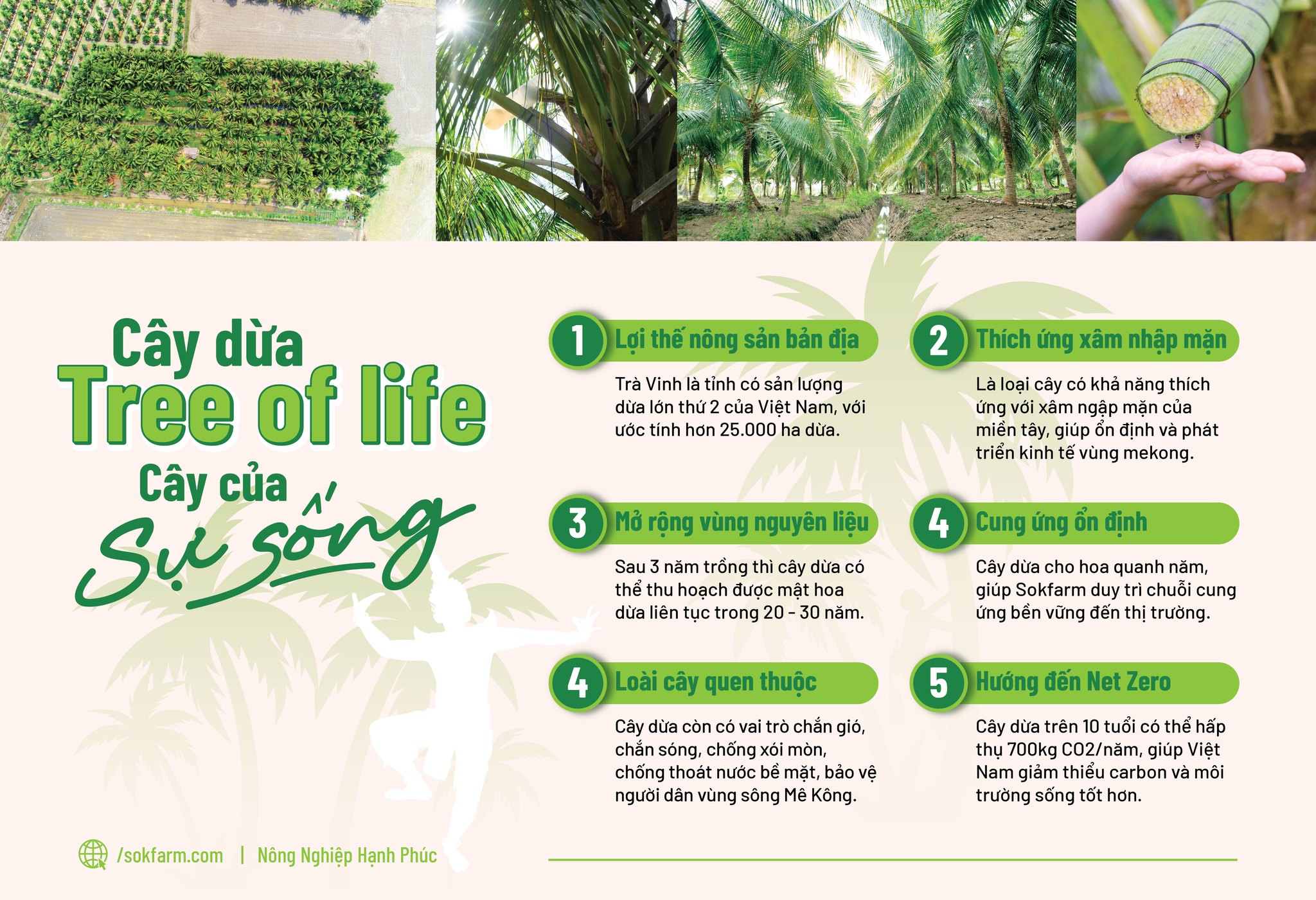 Cây dừa còn được gọi là “Tree of life” (cây của sự sống) không chỉ vì nó mang lại nhiều lợi ích kinh tế mà còn có vai trò lớn trong bảo vệ môi trường. Chính từ những giá trị này, Sokfarm đã xây dựng sứ mệnh và tầm nhìn của mình xung quanh cây dừa và ngành nghề thu mật hoa dừa.
