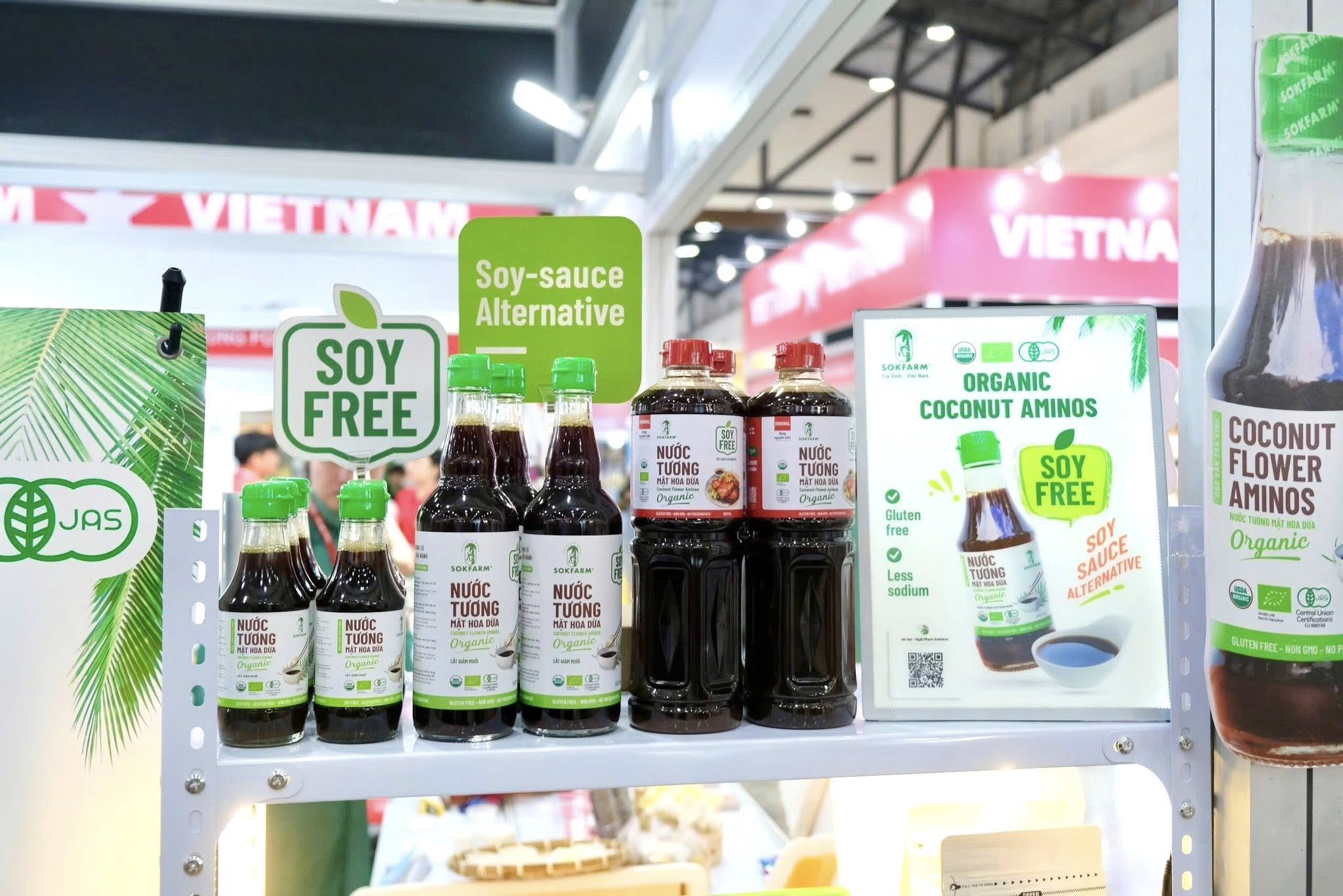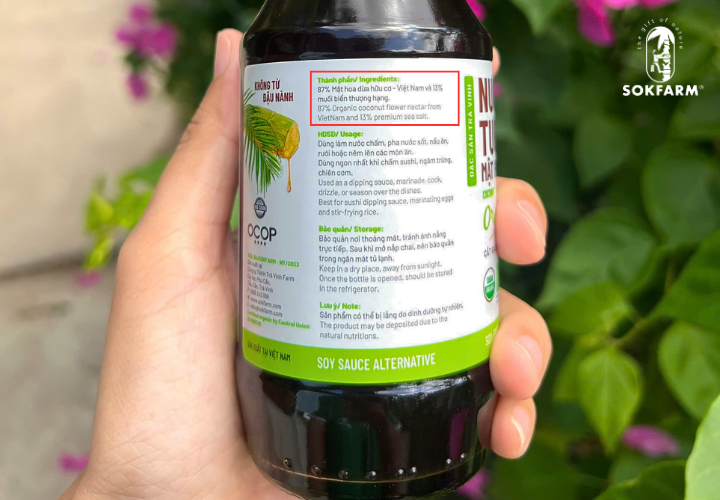 Ví dụ, nước tương từ mật hoa dừa Sokfarm – chỉ 2 thành phần là mật hoa dừa hữu cơ và muối biển tự nhiên, không GMO, không gluten, không đậu nành, lên men tự nhiên 3 tháng – vừa an toàn, vừa đáp ứng các tiêu chuẩn quốc tế.