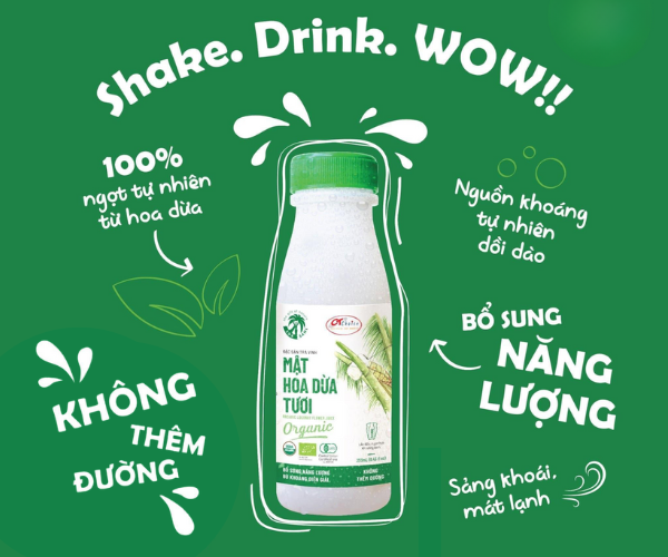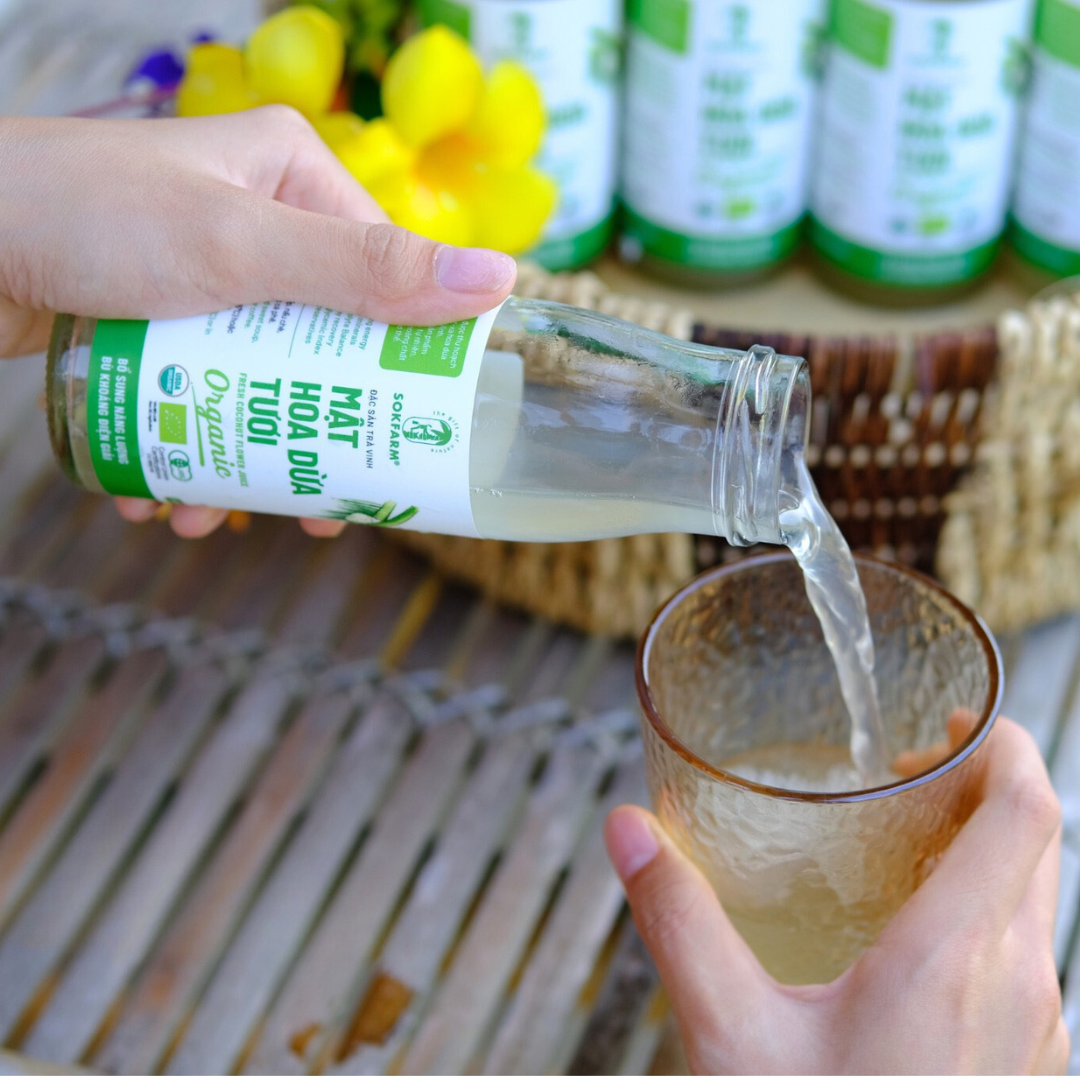 Mật hoa dừa tươi hữu cơ Sokfarm được coi là sản phẩm bù khoáng tự nhiên, bởi dừa ở