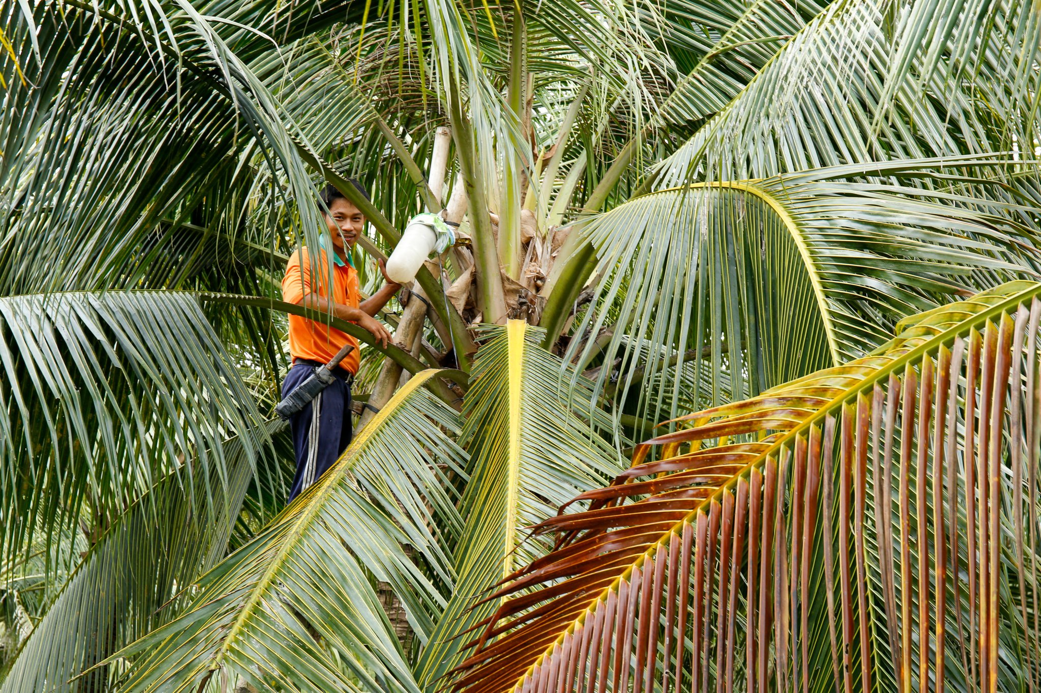 Mật hoa dừa được các chú nông dân thu mật hằng ngày