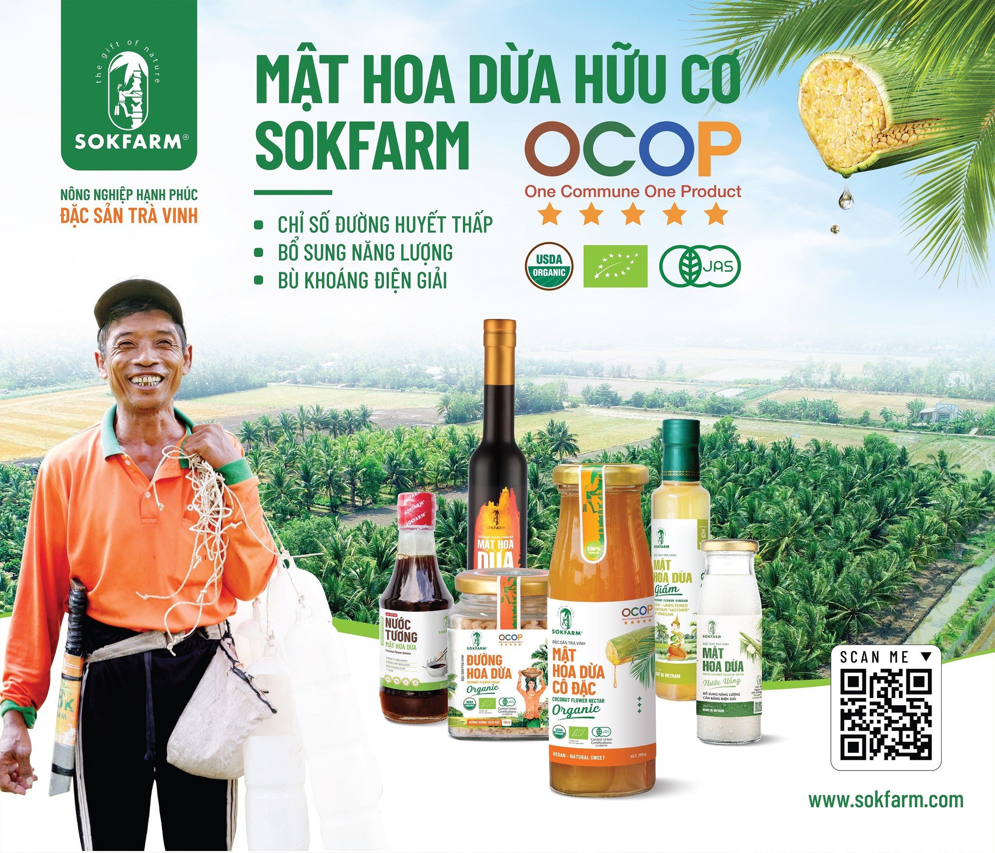 Dù biết rằng, dừa thực sự là một báu vật của tự nhiên, có khả năng đem đến cả trăm loại sản phẩm hữu dụng nhưng ít người biết rằng, giờ còn có thêm một sản phẩm đặc biệt khác, mật hoa dừa. Và giờ đây, sản phẩm đặc biệt ấy đã được Sokfarm, một doanh nghiệp nhỏ ở Trà Vinh, nâng niu phát triển và giới thiệu nó tới thị trường quốc tế.