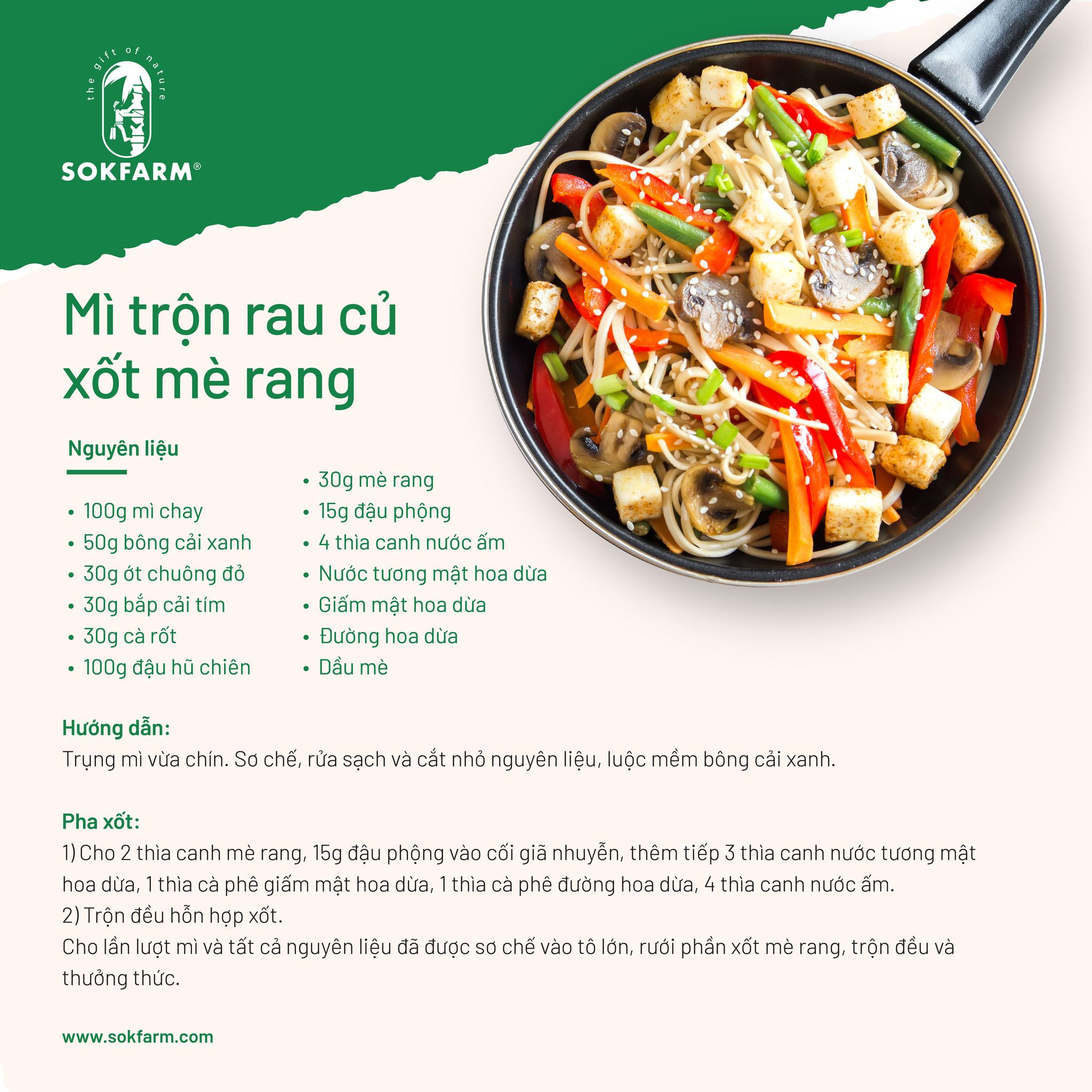 Mì trộn có nguồn gốc từ Hàn Quốc là món ăn yêu thích của nhiều bạn trẻ. Hôm nay cùng Sokfarm vào bếp làm món mì trộn rau củ xốt mè rang cùng bộ gia vị hữu cơ mật hoa dừa cho những ngày ăn chay nhé.