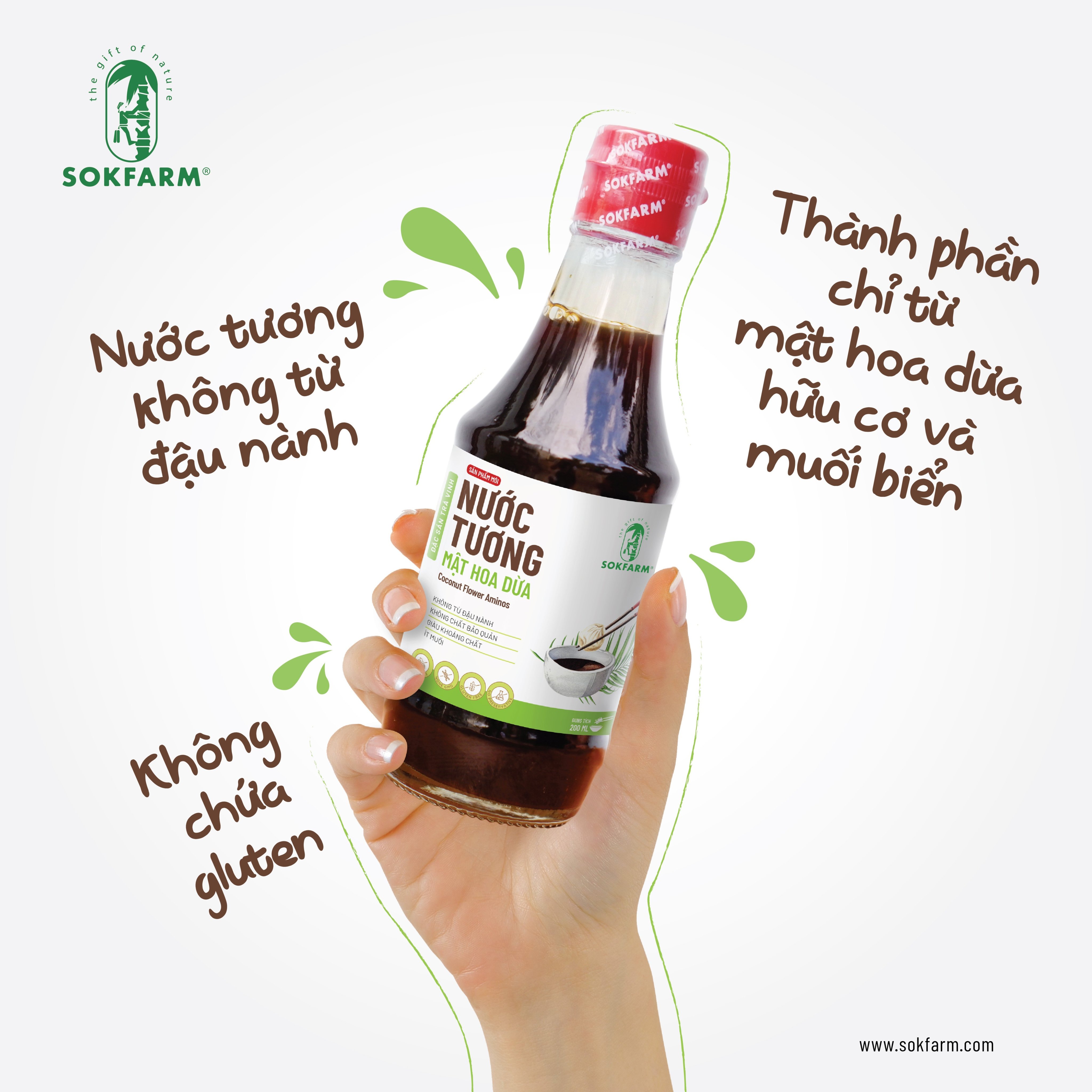 - Không chứa gluten: Nước tương mật hoa dừa hữu cơ Sokfarm cũng không chứa gluten, là một tin vui cho những người bị dị ứng với gluten, họ có thể sử dụng sản phẩm này an toàn.