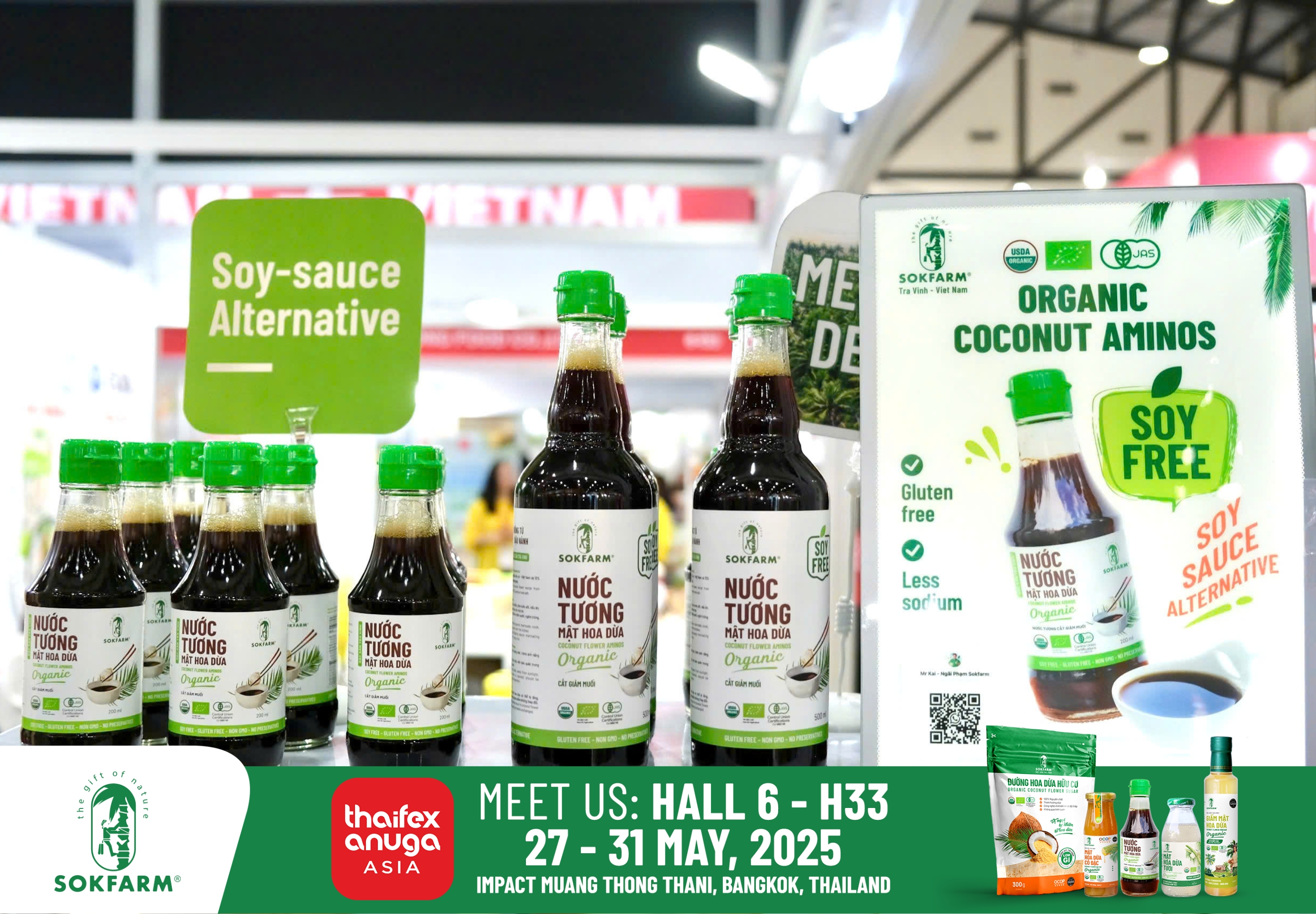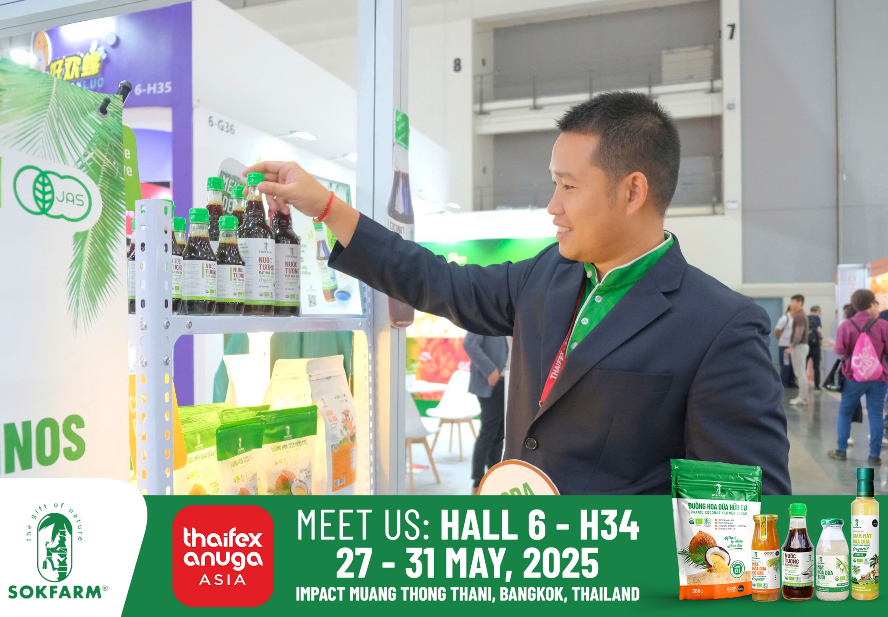 Liên tục có mặt tại Thaifex – Anuga Asia trong 4 năm liên tiếp, Sokfarm – thương hiệu nông nghiệp hữu cơ từ Trà Vinh – đang từng bước khẳng định vị thế của ngành mật hoa dừa Việt Nam trên bản đồ xuất khẩu nông sản toàn cầu. Thaifex 2025 là dịp quan trọng để Sokfarm tiếp tục lan tỏa thông điệp “Nông nghiệp hạnh phúc” và khẳng định cam kết phát triển bền vững, vì sức khỏe cộng đồng.