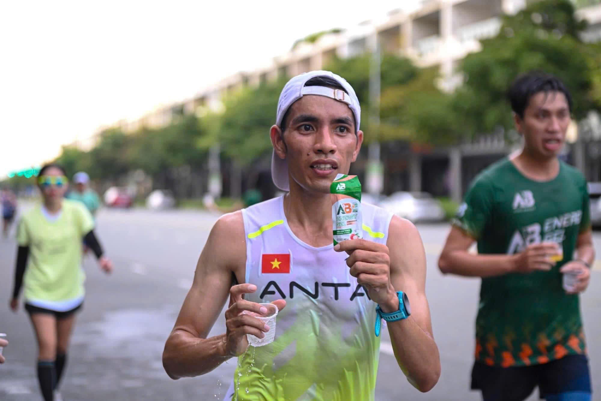 Vận động viên sử dụng gói gel năng lượng từ mật hoa dừa trên đường chạy