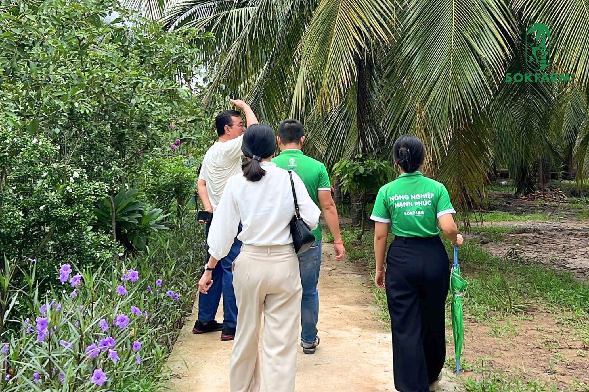 Đại diện Sokfarm cùng đối tác Hàn Quốc dạo bước trong vườn dừa hữu cơ