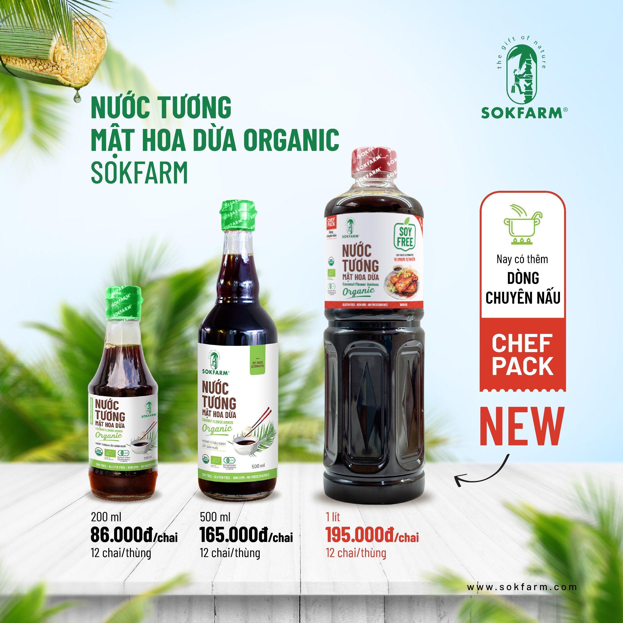 Đồng thời, đây cũng là dòng nước tương cắt giảm muối đến 50% so với nước tương truyền thống, và vị Umami tự nhiên có trong sản phẩm. Đây sẽ là lựa chọn loại gia vị hữu cơ hoàn hảo cho kệ bếp nhà bạn. Sokfarm tự hào mang đến cho bạn sản phẩm nước tương “soy free”, không chỉ ngon miệng mà còn an toàn sức khỏe cho gia đình bạn trong mỗi bữa ăn.