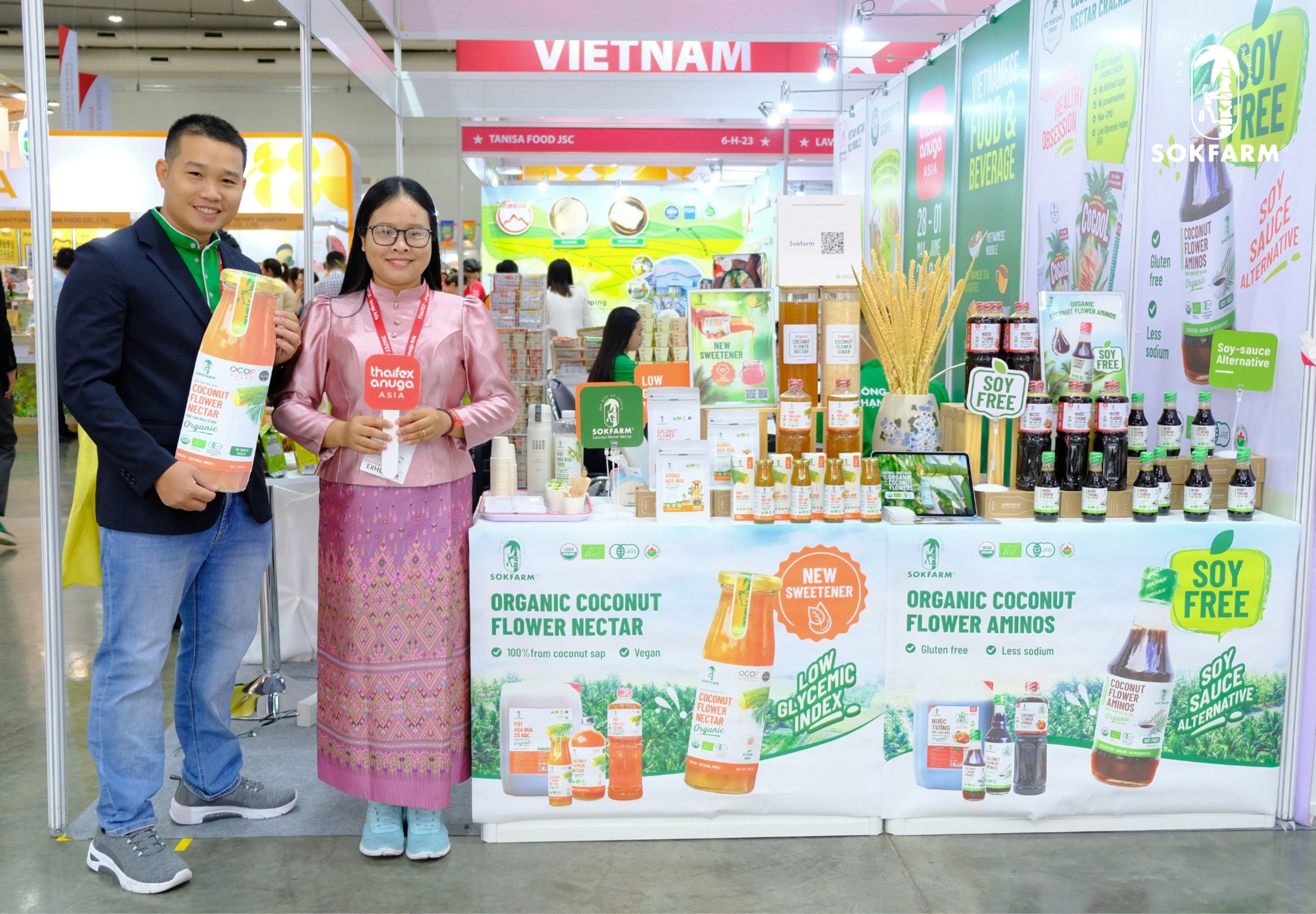 Tại THAIFEX – Anuga Asia 2025, Sokfarm sẽ giới thiệu đến Quý đối tác và khách hàng những dòng sản phẩm đặc sắc nhất — kết tinh từ tinh hoa cây dừa bản địa Trà Vinh, công nghệ sản xuất hiện đại và tâm huyết phát triển nông nghiệp bền vững.