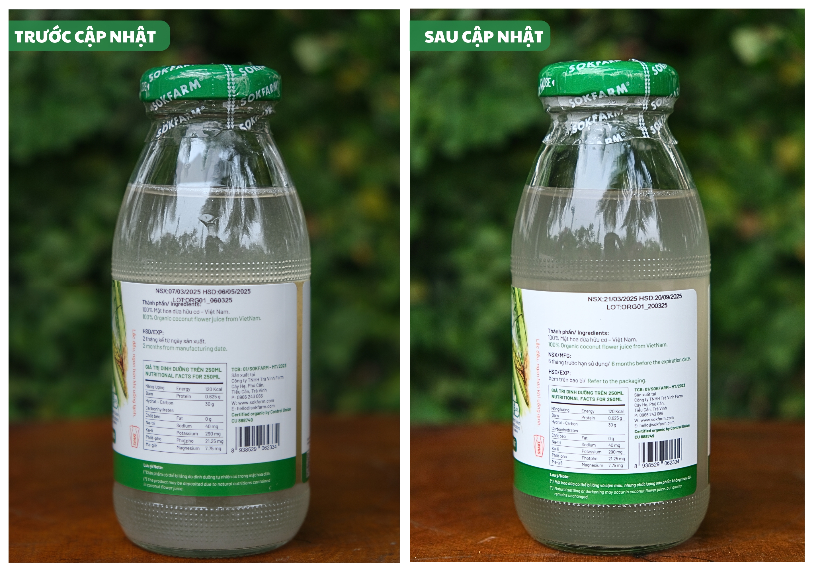 Công ty TNHH Trà Vinh Farm (Mật hoa dừa Sokfarm) xin chân thành cảm ơn Quý khách đã tin tưởng và ủng hộ sản phẩm Mật Hoa Dừa Tươi Organic trong suốt thời gian qua. Nhằm đáp ứng xu hướng tiêu dùng hiện đại và nâng cao trải nghiệm của khách hàng, chúng tôi xin thông báo về việc điều chỉnh nội dung trên nhãn sản phẩm Mật Hoa Dừa Tươi Organic. Dưới đây là chi tiết các thay đổi: