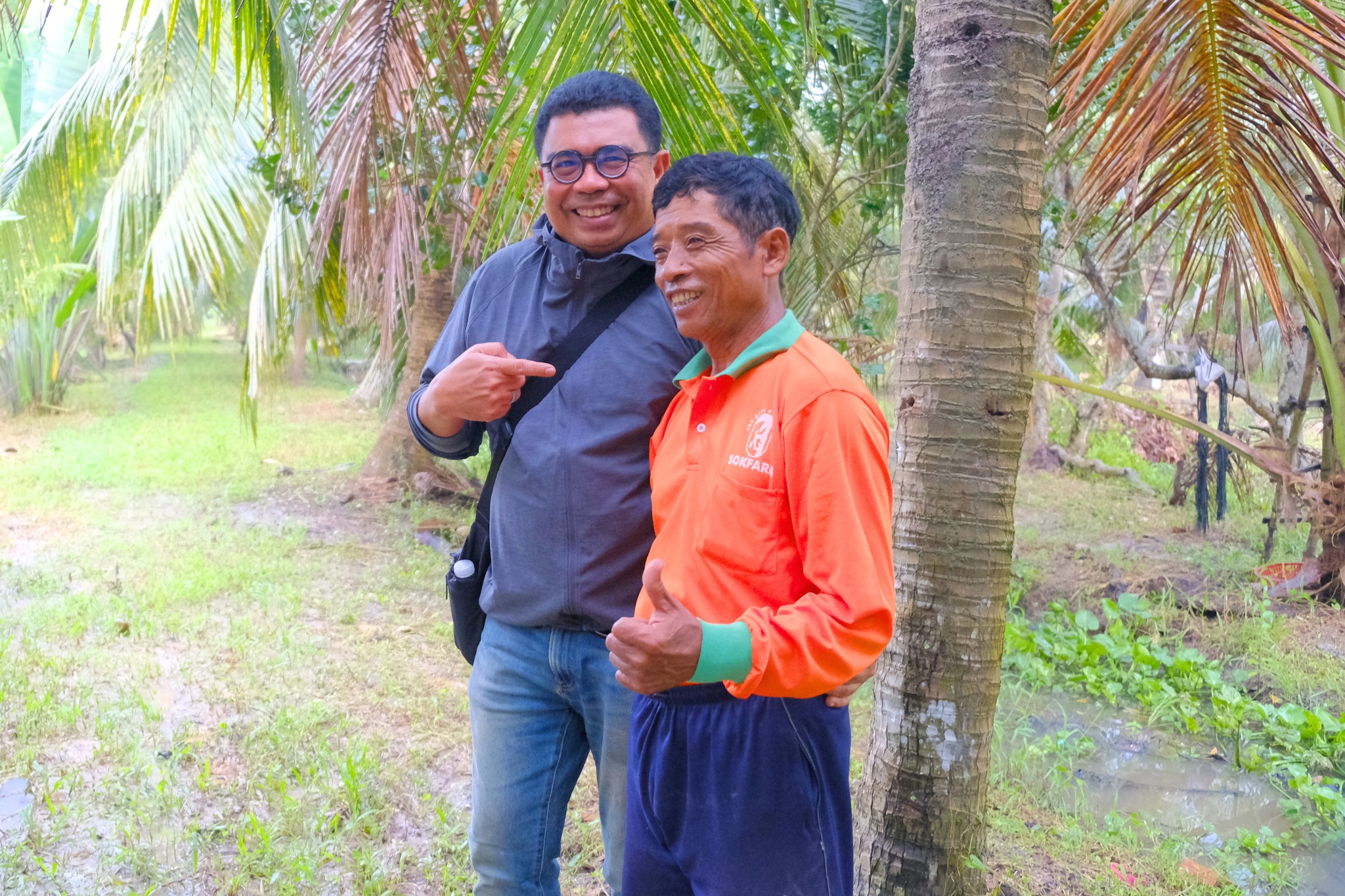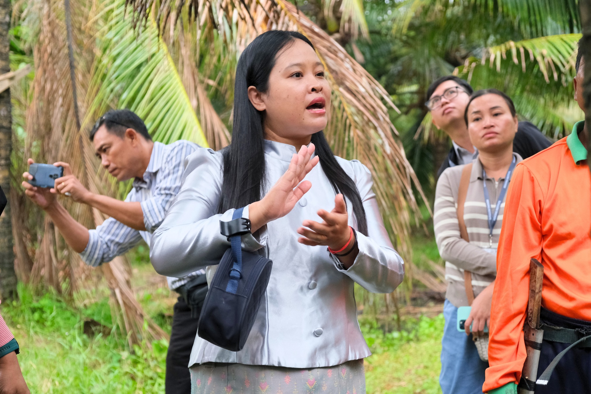 Chuyến tham quan tại Farmstay Sokfarm được tổ chức với mục tiêu vừa tham quan mô hình nông nghiệp thực tế, vừa trao đổi kinh nghiệm hợp tác và phát triển sáng kiến nông nghiệp bền vững. Đoàn được tham quan vườn dừa – nơi Sokfarm triển khai mô hình trồng dừa thu mật theo hướng hữu cơ và bền vững, đồng thời tìm hiểu về các khâu trong quy trình quản trị chuỗi giá trị: từ chăm sóc cây, thu hoạch mật hoa dừa, chế biến đến phân phối sản phẩm.