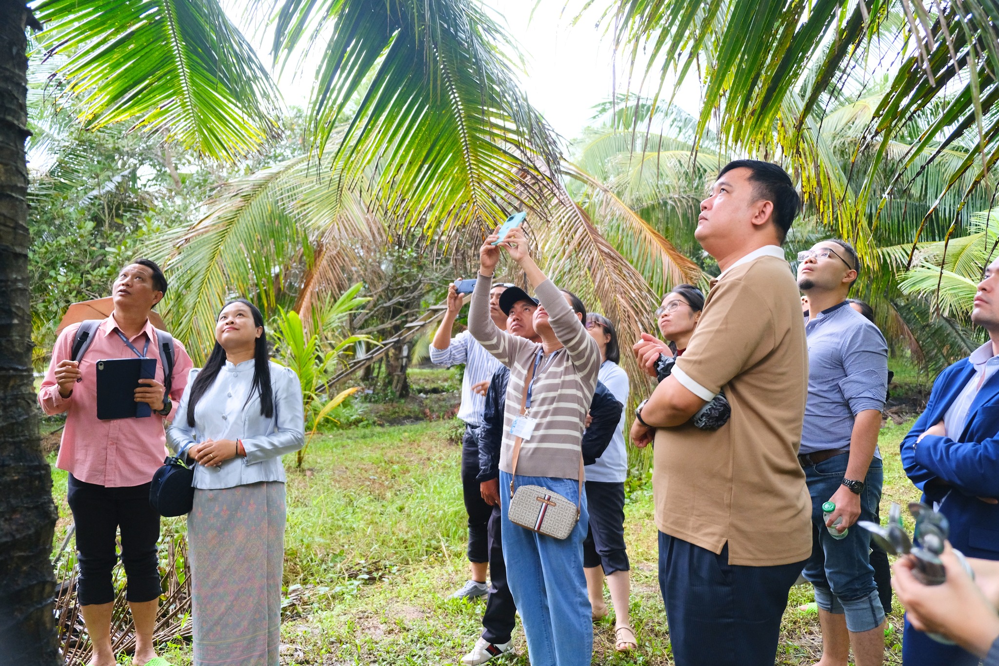 Mekong Institute tham quan Farmstay Sokfarm, khảo sát mô hình dừa thu mật hoa dừa hữu cơ, trao đổi cơ giới hóa, chuyển đổi số, đào tạo nghề và sáng kiến xanh.
