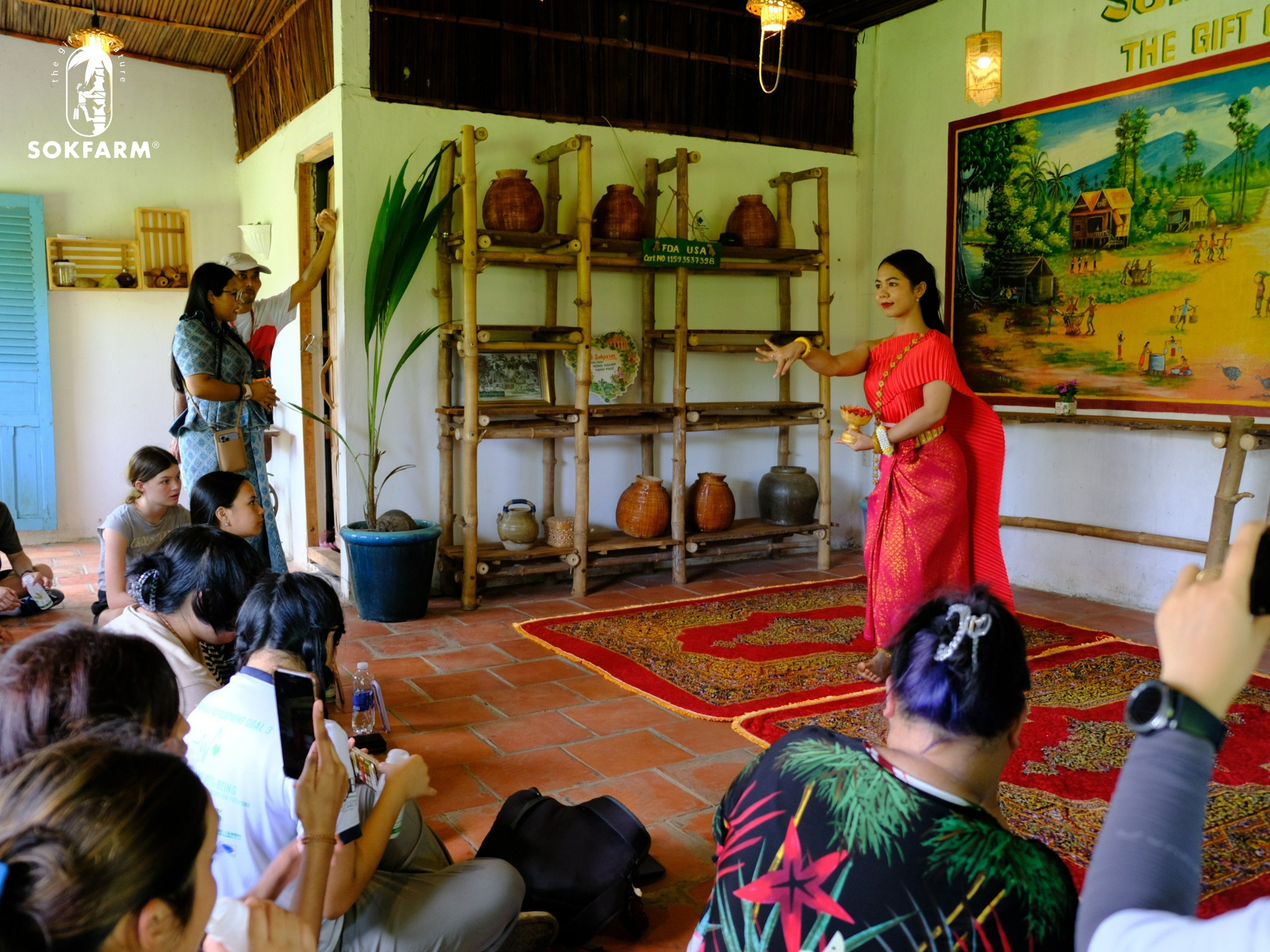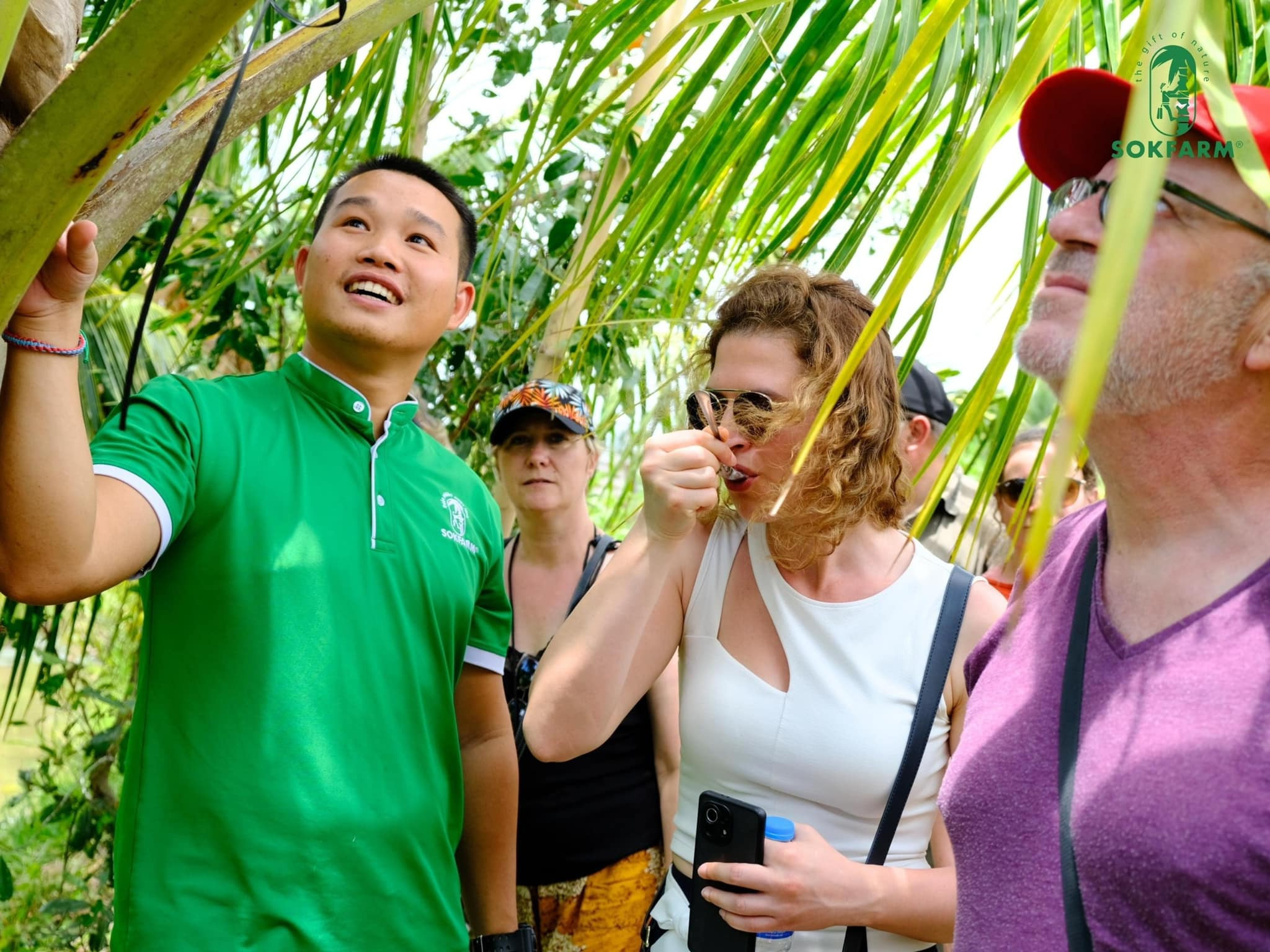 Đến với Sokfarm, du khách sẽ được thưởng thức mật hoa dừa tươi hữu cơ Sokfarm. Lắng nghe câu chuyện về biến đổi khí hậu tại vùng Đồng bằng sông Cửu Long và cách những người trẻ đã tìm ra mô hình nông nghiệp thích nghi với biến đổi khí hậu và xâm nhập mặn vùng Mekong.