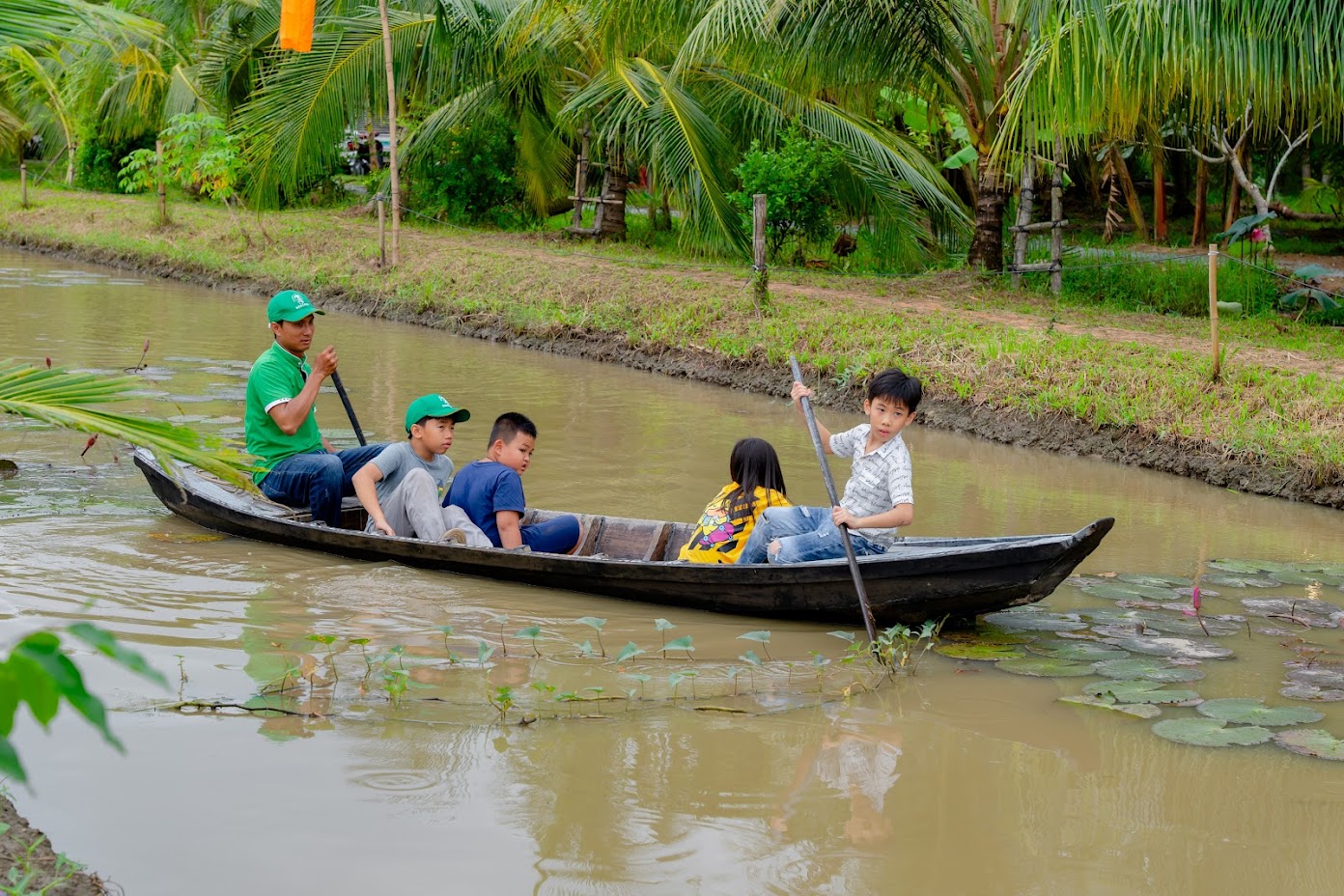 Chèo thuyền cùng nhau trên dòng sông nhỏ