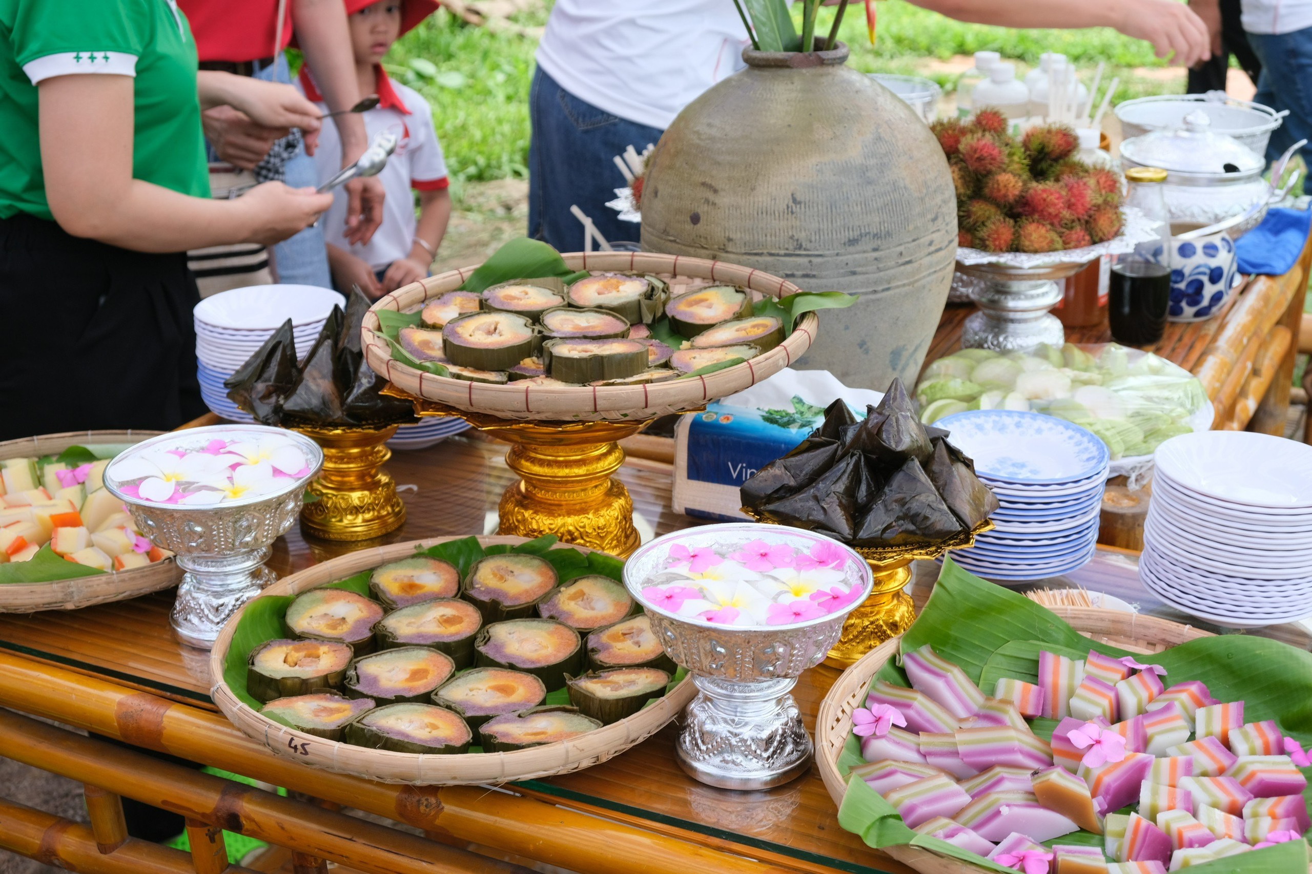 Một gia đình ba thế hệ cùng làm bánh dừa truyền thống Khmer tại Farmstay Sokfarm