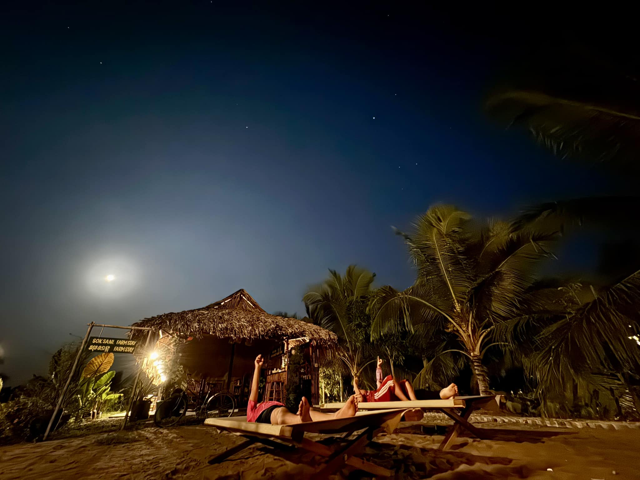 Gia đình cùng tắm mình dưới ánh sáng dịu nhẹ từ vầng trăng, nhìn ngắm những ngôi sao sáng lấp lánh.