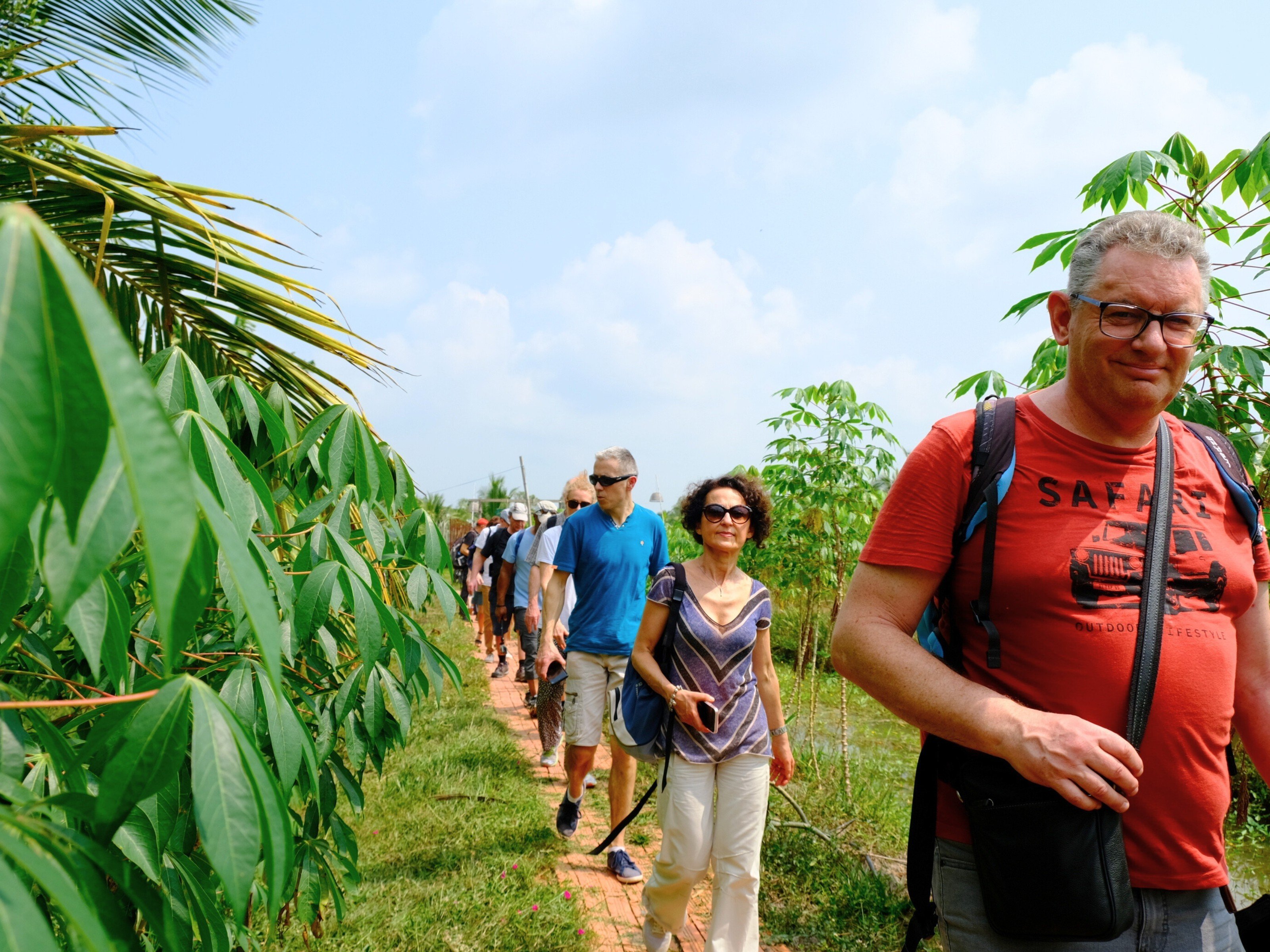 Dưới những tán dừa hữu cơ xanh mát, du khách sẽ được hướng dẫn mát xa hoa dừa thu mật cùng người nông dân Khmer, và nếm thử giọt mật từ hoa dừa.