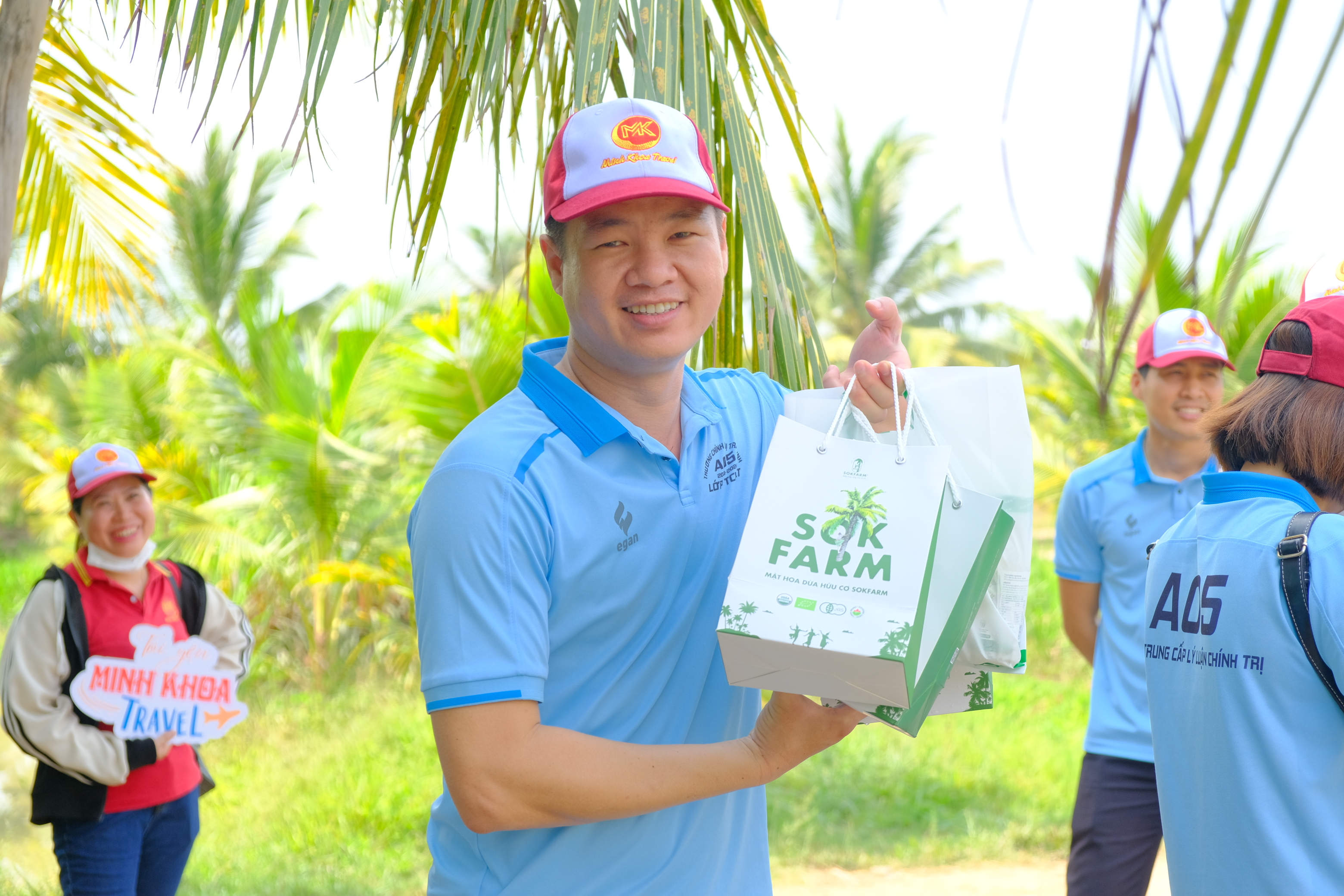 Du khách ra về với những sản phẩm từ mật hoa dừa hữu cơ Sokfarm