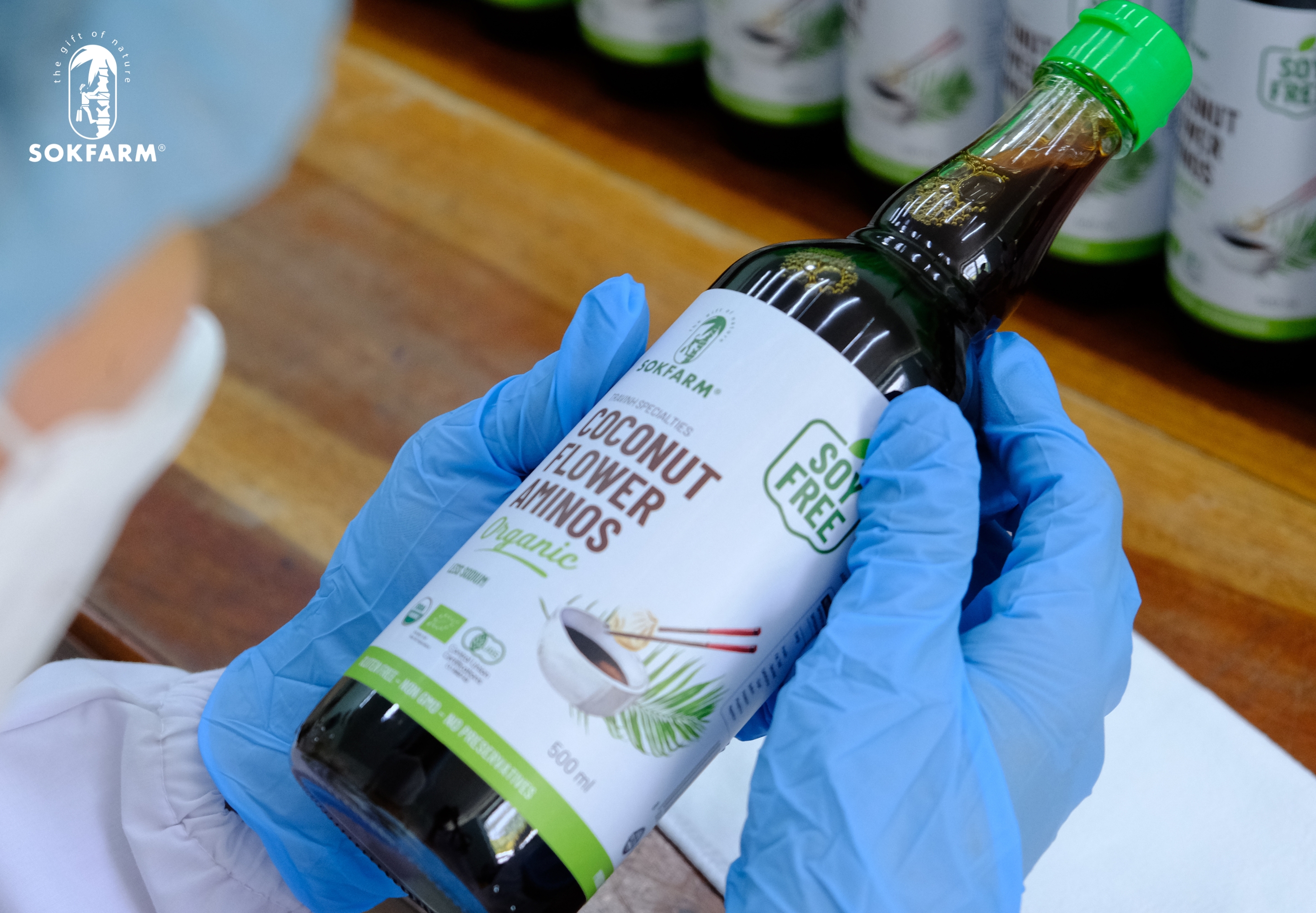 Nước tương mật hoa dừa Sokfarm được lên men bằng phương pháp truyền thống trong vòng 3 tháng. Quá trình lên men này không chỉ tạo ra hương vị đặc trưng mà còn giúp giữ nguyên các giá trị dinh dưỡng của mật hoa dừa và muối biển. Đặc biệt, sản phẩm này không chứa đậu nành, gluten và giảm mặn đến 50%, phù hợp với mọi đối tượng từ người già đến trẻ em, kể cả những người bị dị ứng với đậu nành hay gluten.