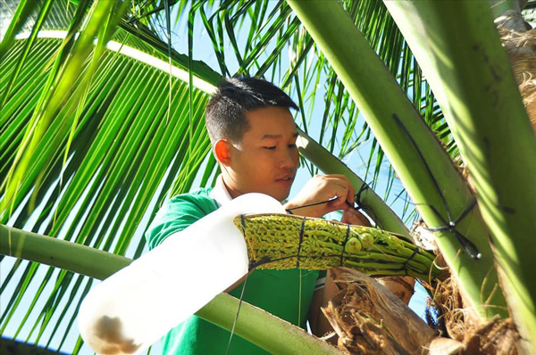 Anh cho biết Trà Vinh là tỉnh có sản lượng dừa lớn thứ 2 ở nước ta nhưng giá bán lại “lận đận”, thấp hơn dừa ở Bến Tre. Đỉnh điểm vào năm 2018, giá dừa khô thấp kỷ lục, cả 1.200 quả dừa chỉ bán được 2 triệu đồng. Điều này đã khiến anh trăn trở mãi, thôi thúc anh phải tìm ra một phương pháp khai thác cây dừa mới để tăng giá trị kinh tế.
