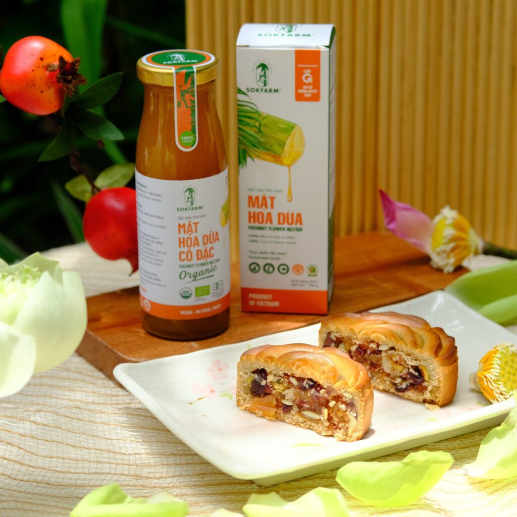 Bên cạnh việc thay thế đường cát trắng trong làm bánh trung thu, bạn còn có thể dùng mật hoa dừa cô đặc Organic Sokfarm như một gia vị nấu ăn hằng ngày. Vì loại mật hữu cơ này rất giàu các khoáng chất như natri, kali, magie và phốt pho.