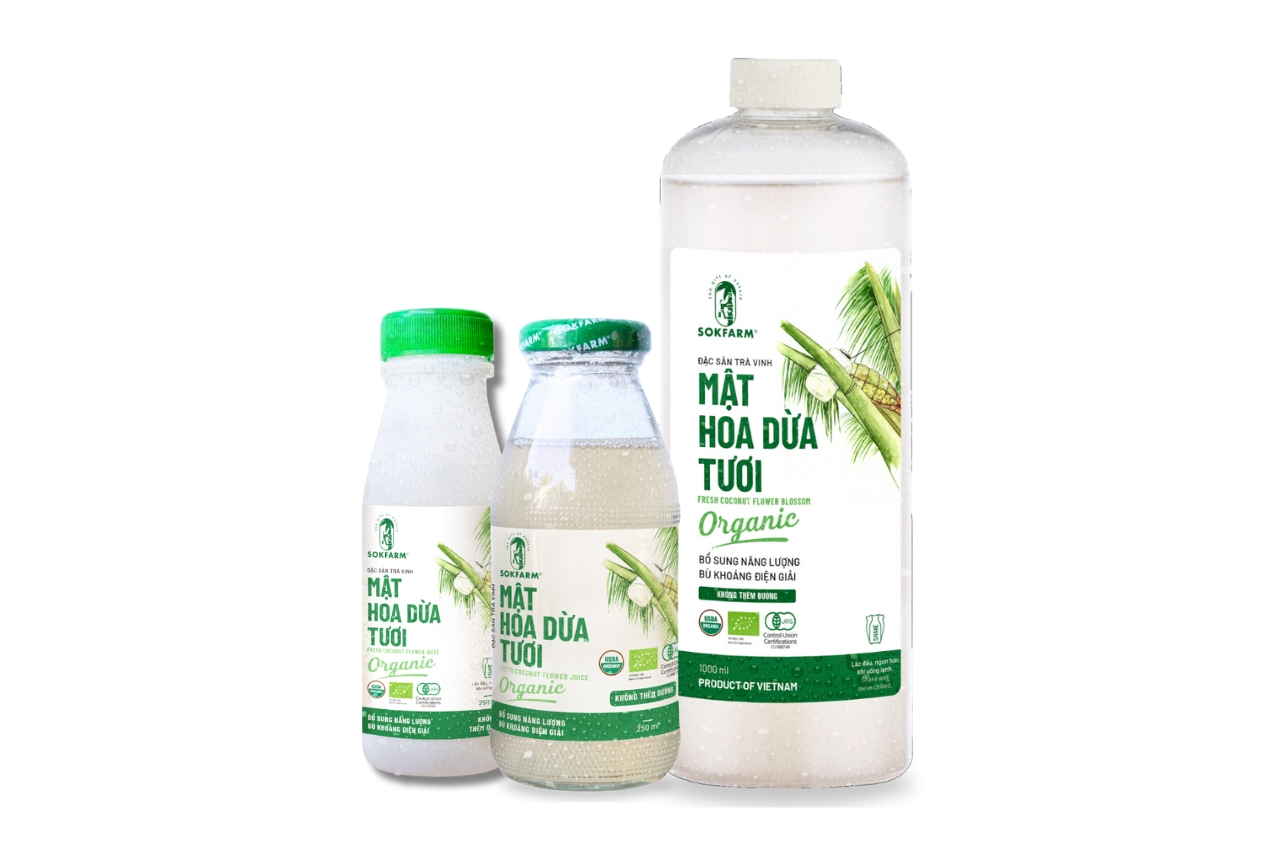 Nước uống mật hoa dừa tươi organic Sokfarm - Bổ sung năng lượng, bù khoáng điện giải