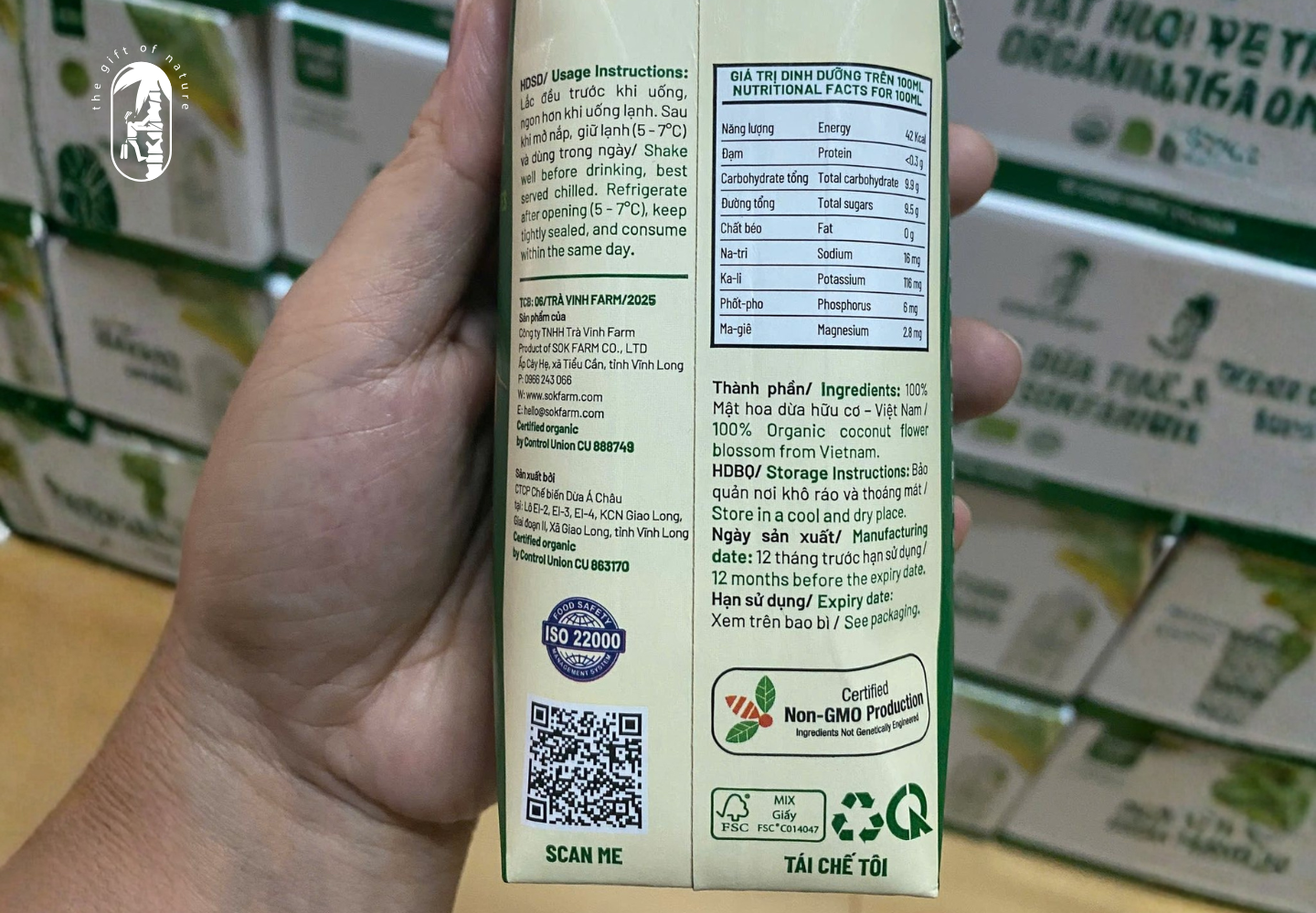Thành phần và thông tin của sản phẩm Nước uống mật hoa dừa tươi hữu cơ Sokfarm