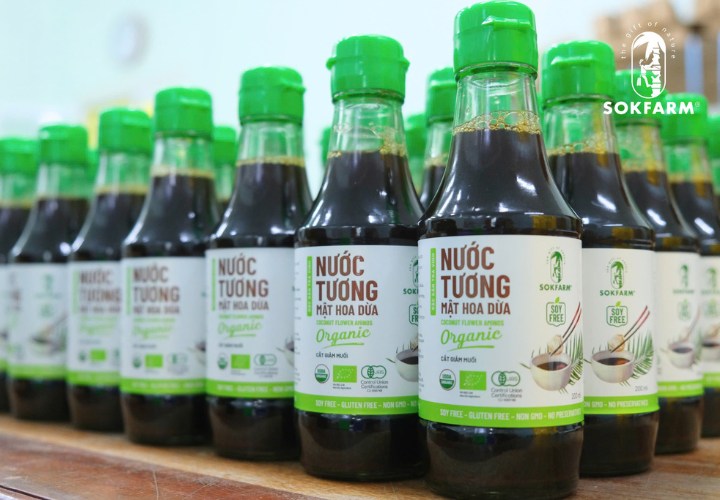 Không phụ gia, không chất điều vị, không chất bảo quản – sản phẩm này chinh phục hoàn toàn những ai theo đuổi triết lý “ăn sạch”. Với mật hoa dừa hữu cơ được thu thủ công từ các chú nông dân thu mật hoa dừa tại Trà Vinh và muối biển Sa Huỳnh tại Quảng Ngãi, nước tương Sokfarm đảm bảo tính nguyên bản, lành mạnh, hữu cơ cho người tiêu dùng.
