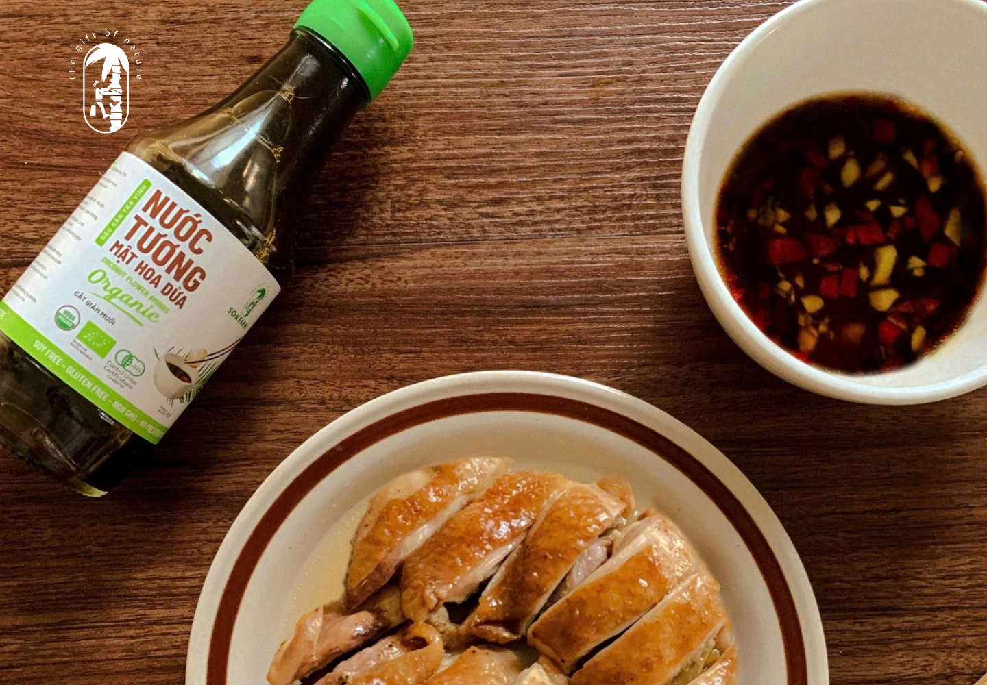Món ăn cùng nước tương mật hoa dừa hữu cơ Sokfarm