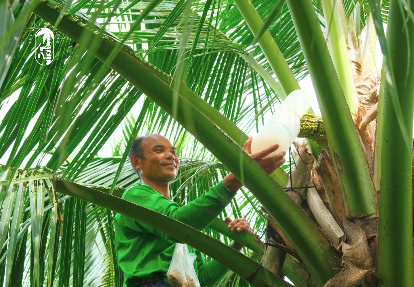 Nông dân Sokfarm thu mật hoa dừa làm nguyên liệu sản xuất