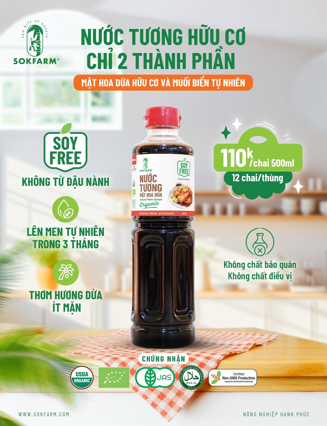 Hãy thử nước tương mật hoa dừa hữu cơ Sokfarm – lựa chọn tự nhiên cho sức khỏe bền vững.
