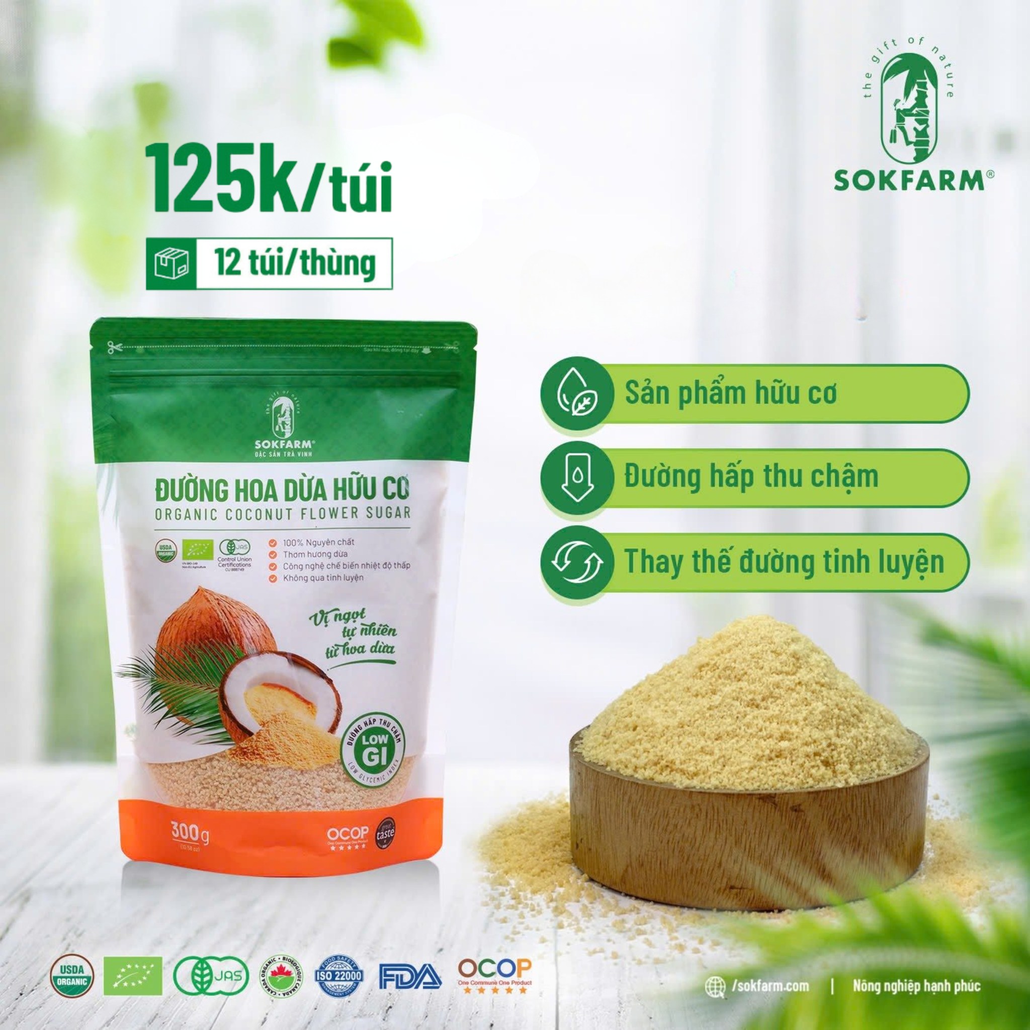 Đường hoa dừa hữu cơ Sokfarm không tách mật chứa giàu khoáng chất và chất dinh dưỡng