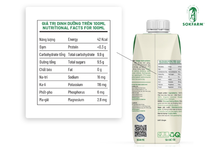 Nước làm mát cơ thể giúp bù điện giải từ mật hoa dừa hữu cơ Sokfarm